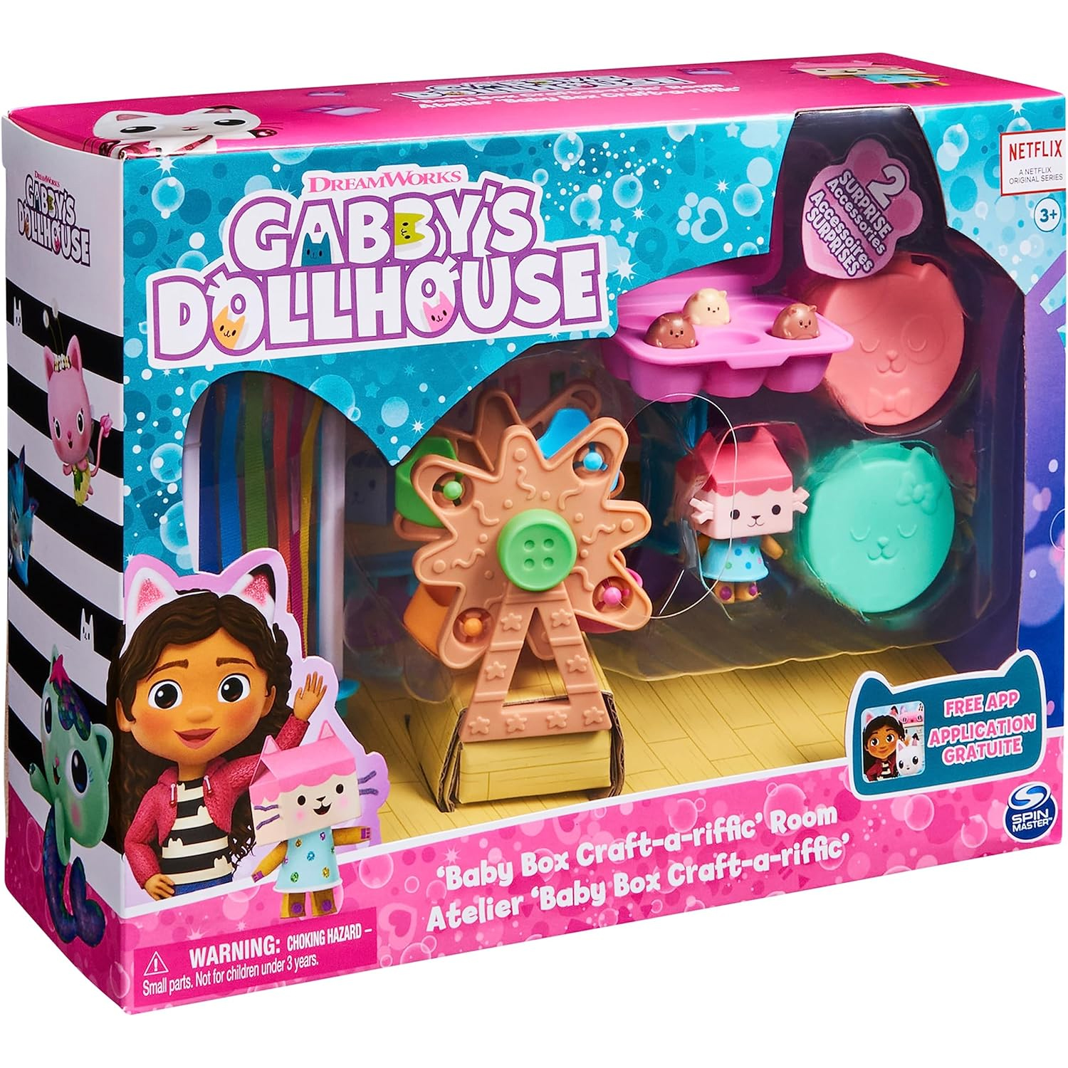 A casa de bonecas de GABBY: Construa o seu próprio mundo de Gabby casa de bonecas juntamente com todos os gatos da série de TV Aproveite a sala de artesanato de bebé box da casa de bonecas de Gabby Bebé BOX e os gatos Hamster: Inclui uma figura de Bebé Box e três gatos hamster saltitantes que vêm na sua caixa de ovos. Também tem uma porta de quarto muito adorável com bandeiras coloridas Caixa e acessório surpresa: Abra as caixas surpresa, assim como Gabby na série de TV, para encontrar os brinquedos misteriosos: um barco de brincar e um gato hamster que pode montar na roda para mais diversão com Gabby e os seus gatos da casa de Gabby brinquedos Recreia cenários da série: Este conjunto é perfeito para jogar de forma divertida e emocionante. Use-o com outras divisões exclusivas (vendidas separadamente) ou coloque-o na Gabby Bonecas House (vendido separadamente) para criar as suas próprias cenas da série de TV Inclui: 1 quarto, 1 figura, 2 móveis, 2 caixas surpresa, 2 acessórios, 1 guia de instruções