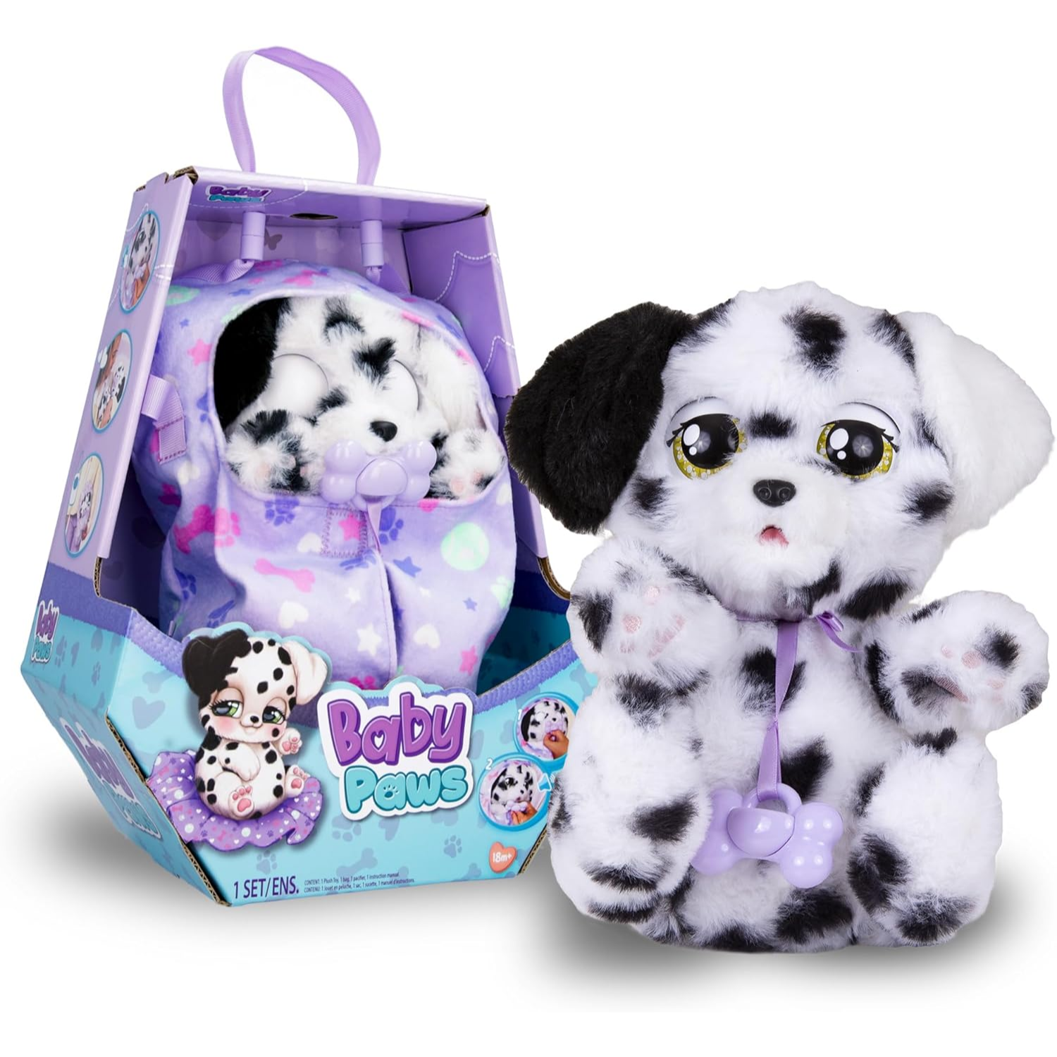 Os Baby Paws são os cachorrinhos mais fofos, que adoram te acompanhar sempre para qualquer sítio que fores. Retira a chucha personalizada e observa-os a abrirem os olhos pela primeira vez enquanto emitem sons. Eles são simplesmente adoráveis! Ao abrir o cobertor, descobrirás o seu corpo macio. Na hora de dormir, dá-lhe a chucha e ele irá adormecer fazendo sons de cãozinho bebé. Mas a diversão é ainda maior, pois a manta tem uma alça para transformá-la em bolsa. Basta dobrá-la e terás uma linda bolsa de ombro para levares o teu cachorrinho em viagem. Cada cachorrinho é extremamente macio, então podes acariciá-lo à noite! Podes até transformar a caixa numa cama para eles. Cada cachorrinho vem com 2 acessórios, o cobertor e a chucha.