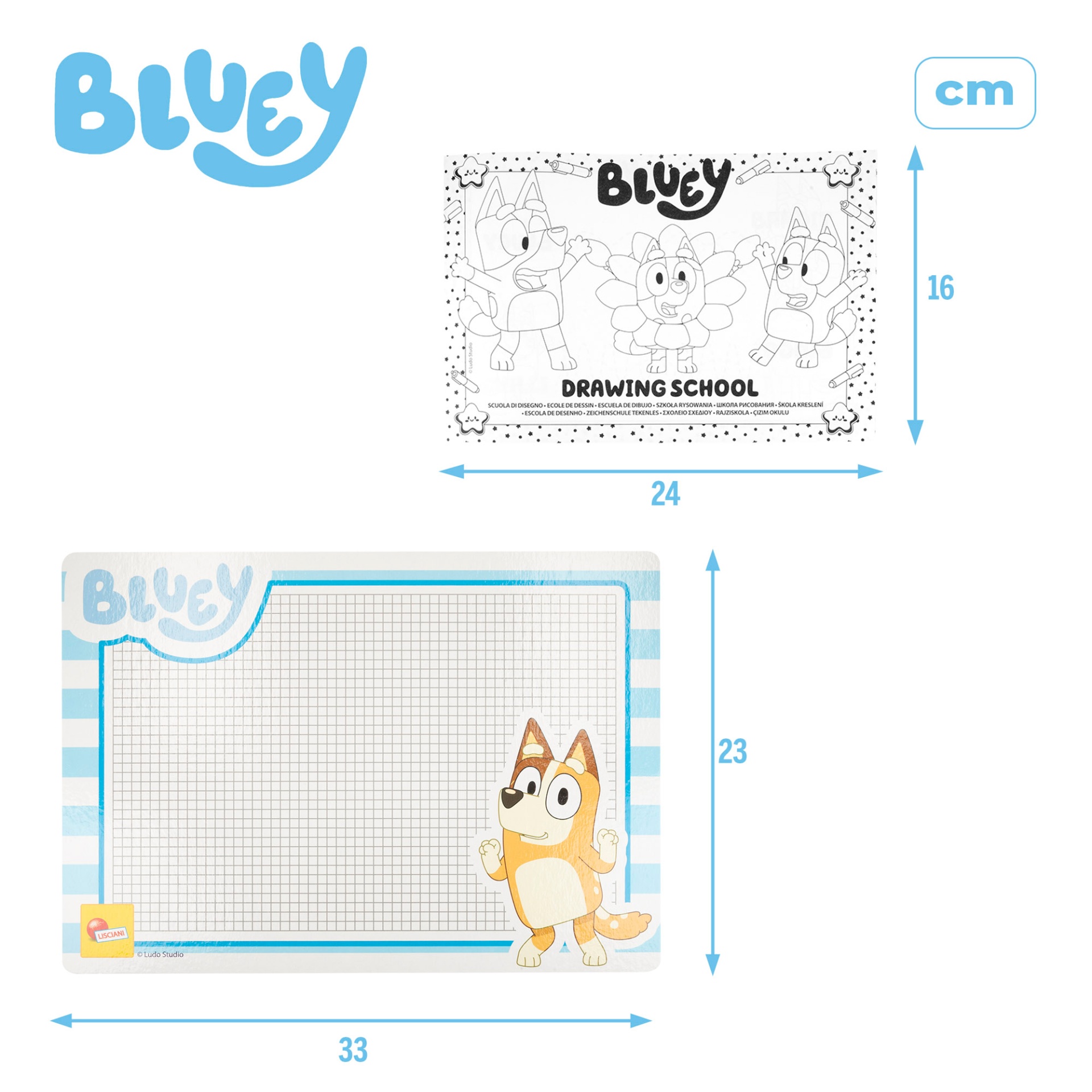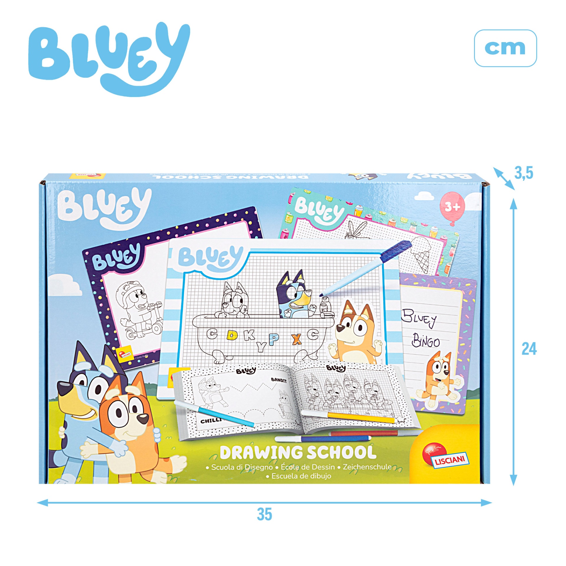 Dá asas à tua criatividade e dá vida às tuas personagens Bluey preferidas com este fantástico kit de desenho e coloração! Graças ao caderno de desenho, vais subir de nível passo a passo através de uma variedade de desenhos e exercícios organizados por dificuldade progressiva. Desde exercícios de pré-escrita a ilustrações complexas e exercícios de escrita mais avançados, aprende de forma fácil e divertida com Bluey e Bingo!
