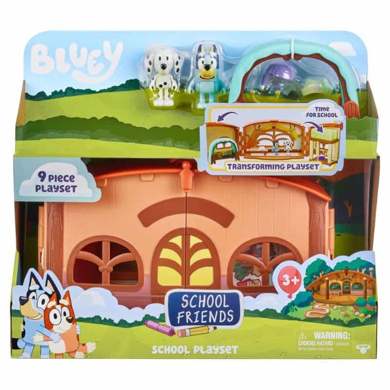 Bluey - School Playset, escola da série de desenhos animados infantil, 2 figuras Chloe