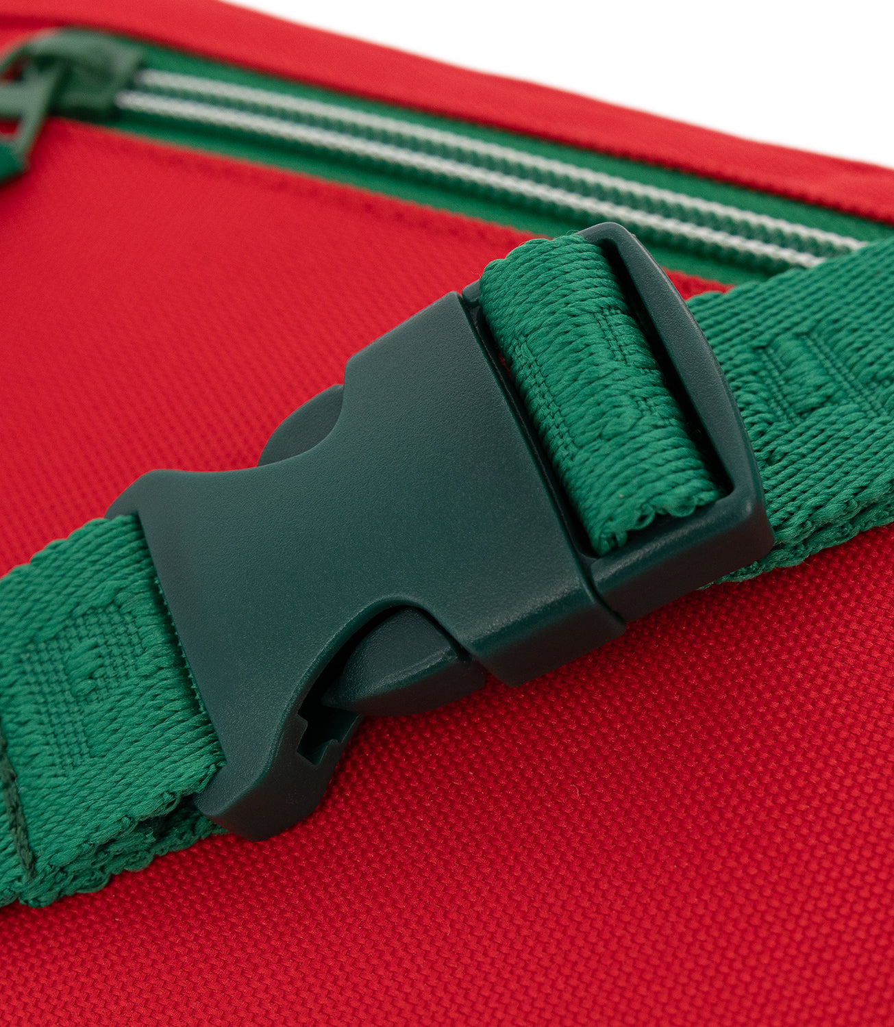 Bolsa de cintura Federação Portuguesa de Futebol em poliéster vermelho resistente, com design prático e compacto. Inclui um compartimento principal de fácil acesso e um compartimento nas costas com fecho. Fecho frontal com lettering Federação Portuguesa de Futebol e precintas personalizadas robustas.