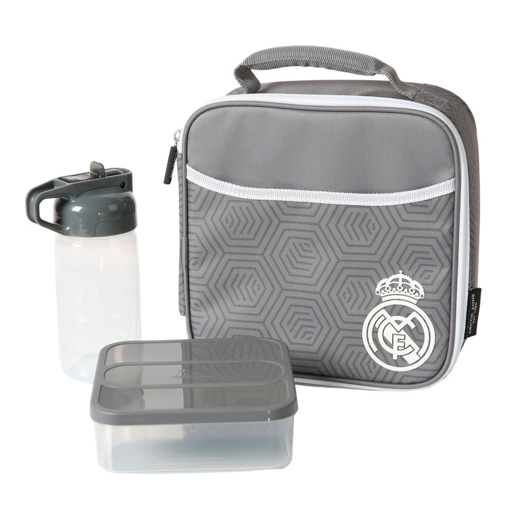 Bolsa porta alimentos termica + tupper + botella Real Madrid