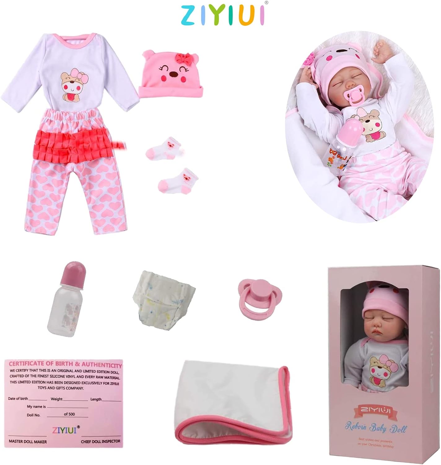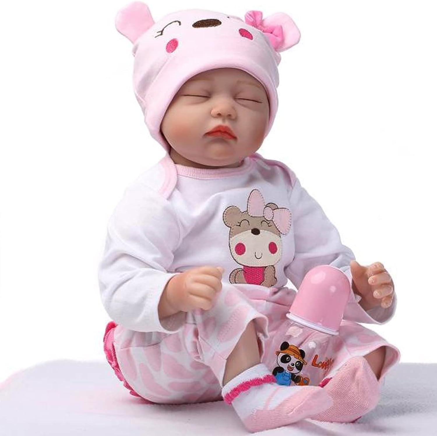 Tamanho do bebé: 55 cm (tamanho recém-nascido) Peso: 1,2 kg. O bebé pode caber em roupas de bebé recém-nascido (0-3 m). Uma chupeta pode adaptar-se à sua boca.