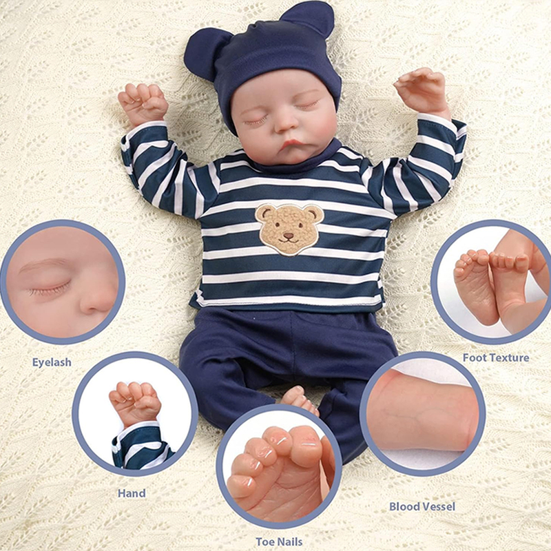 Boneco rebelde nascido: Shhh... acaba de chegar ao mundo. Este bebé recém-nascido macio precisa de dormir. Seja seu amigo, cuide dele e compartilhe momentos de jogo cheios de carinho. Material de boneca realista: todo o seu corpo é feito de vinil, e os detalhes pintados à mão e as pestanas feitas à mão proporcionam uma aparência requintada e realista. Detalhes como rugas naturais e vasos sanguíneos da sua pele conferem-lhe um charme especial. Dimensões e posabilidade realistas: Esta boneca reborn realista mede 20 polegadas dos pés à cabeça e possui membros flexíveis para várias poses. É perfeita para brincar, disfarçar-se e criar cenas diferentes para despertar a imaginação e a criatividade do seu filho. Companheiro perfeito e presente ideal: Este boneco bebé reborn é um excelente companheiro para crianças, ajuda a estimular o dramatização e também pode oferecer companhia a idosos. Ideal como presente de aniversário, Natal, dia da mãe ou qualquer ocasião especial que procure alegria e ternura. O que recebe: Este boneco renascido vem para casa com um cartão de nascimento, uma roupa, uma biberão, uma chupeta e outros acessórios. Abra a caixa e comece a jogar.