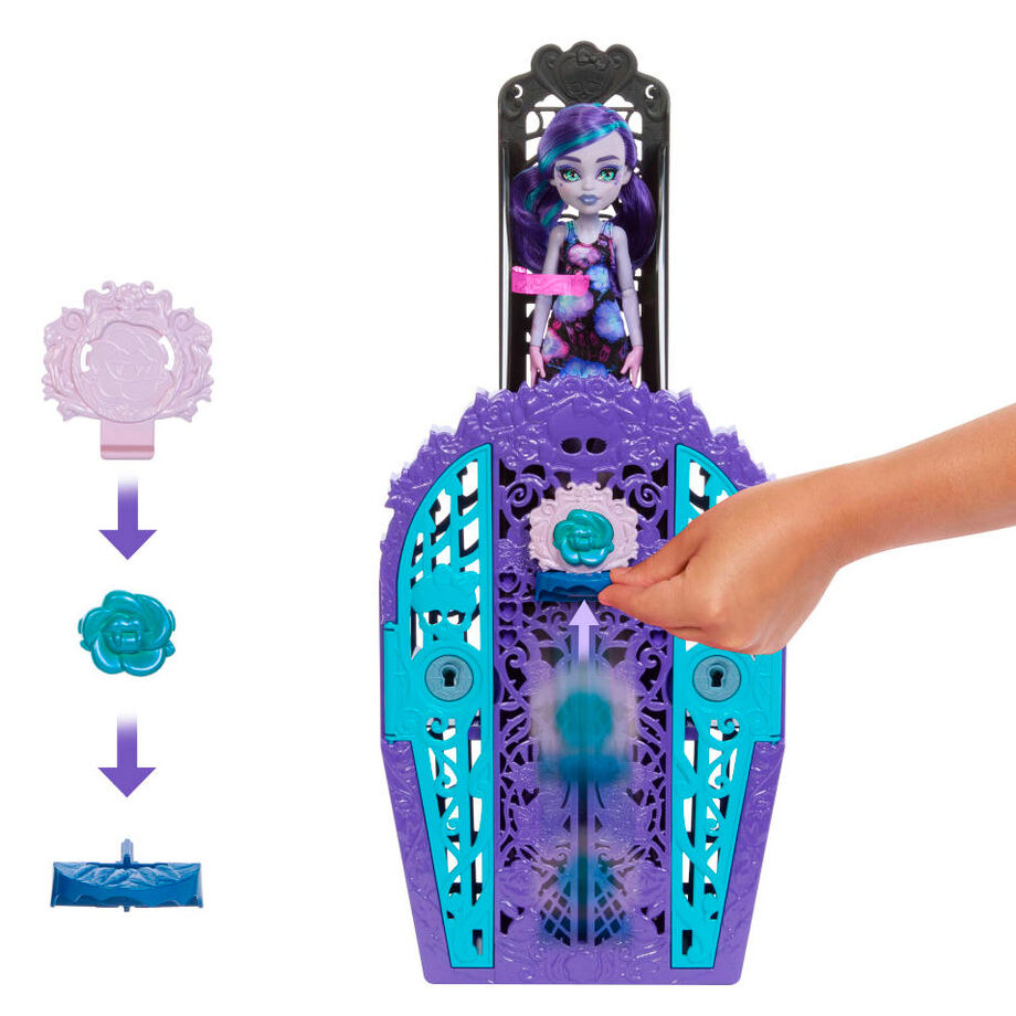 Resolva o mistério, abra as portas de Monster High e descubra uma boneca Monster High com Skulltimate Secrets: Mystery Garden. As crianças podem brincar de detetives assustadores vasculhando o mapa com a chave mágica da lupa em busca de pistas. Ao longo do caminho, elas descobrirão mais de 19 surpresas e viverão uma experiência extraordinária! Quando terminarem de brincar, as crianças podem guardar a boneca, suas roupas e acessórios no armário assustador, perfeito para contar histórias e guardar coisas. Cada item é vendido separadamente, sujeito à disponibilidade. A boneca é totalmente articulada. As bonecas não conseguem ficar em pé sozinhas. As cores e a decoração podem variar.