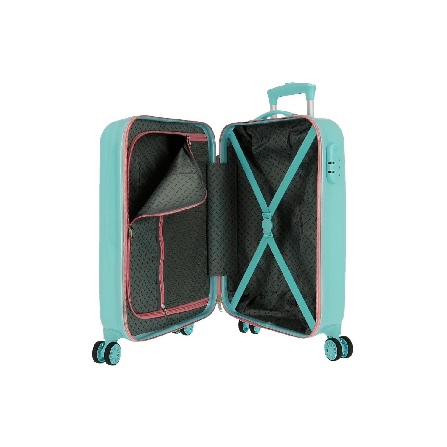 Mala de cabine de 38 cm x 55 cm x 20 cm. Tem uma capacidade de 34L e pesa 2,6 kg. Feito de ABS, um material resistente e leve. Interior prático com dois compartimentos, de um lado, bolso com zíper e, por outro, borracha de fixação. Quatro rodas de giro multidirecionais duplas para uma condução confortável, operação suave e manobrabilidade sem esforço. Fechamento de combinação lateral para viajar com segurança e proteger seus pertences pessoais. De Joumma Bags.