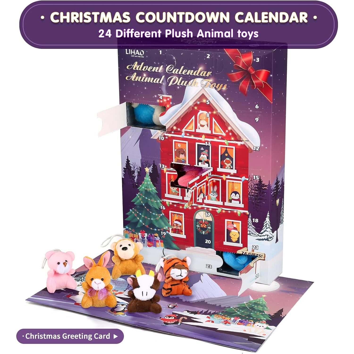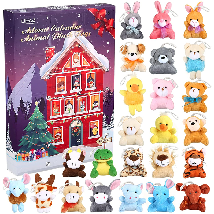 Presente interessante para crianças: Cada caixa tem 24 janelas, ao abrir cada uma poderá obter um brinquedo de peluche. Este design dará aos seus filhos um presente diferente no Natal, perfeito para um ambiente de Natal feliz.