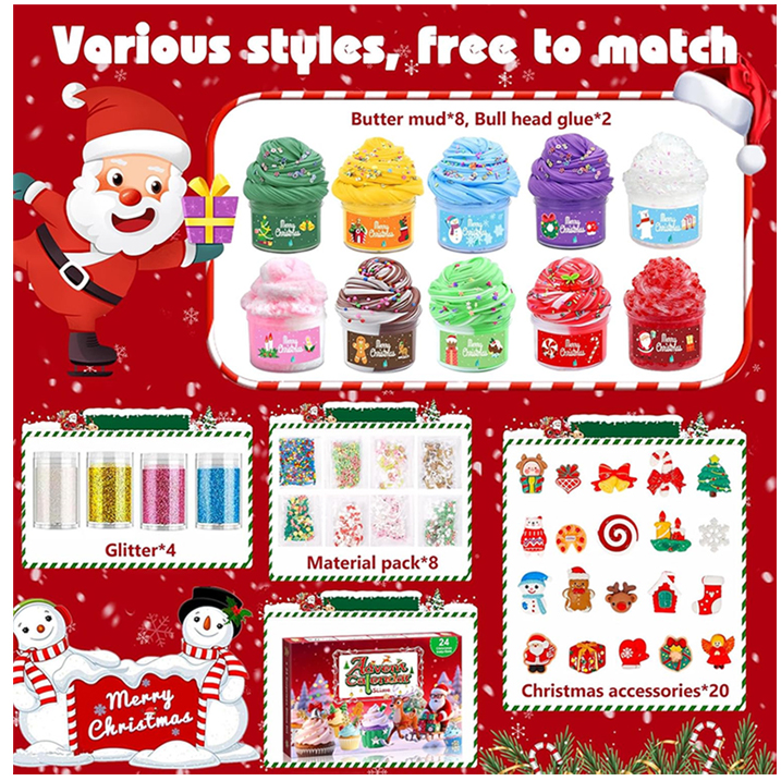 TIENDAEURASIAAquecedor de advento de Natal: Calendário do Advento de Slime contém 10 latas de mini lodo de manteiga, 10 cores diferentes (10 * 70 ml). O calendário do advento de Slime apresenta vários elementos de Natal. O conjunto de slime inclui mini árvores de Natal, bonecos de neve, Pai Natal, renas e outras decorações, que recriam perfeitamente a atmosfera natalícia e encantam as crianças Material seguro: Slime é feito de materiais ecológicos, é fácil de limpar e tem bom odor. Embalagem de alta qualidade e recipientes selados que os seus filhos vão adorar, o kit de bricolage proporciona horas de diversão. Recomendado para crianças a partir dos 3 anos Aquecedor de advento SLIME: O calendário do advento de Slime inclui 24 caixas. A partir de 1º de dezembro, as crianças poderão abrir uma caixa todos os dias e receber uma surpresa única de slime, adicionando um toque especial ao Natal . Estas surpresas não só dão às crianças algo pelo que esperar, como também são uma maneira divertida de fazer a contagem regressiva para o Natal Diversão e relaxamento: quando o aperta, dobra, enrola, gira e esmaga, separe-o e o baba esponjoso reconecta-se sem problemas. Depois de jogar, coloque o produto novamente no frasco, lave as mãos a tempo, não pode comer! Elástico e divertido. Neste processo, sentir-se-á relaxado do fundo do seu coração