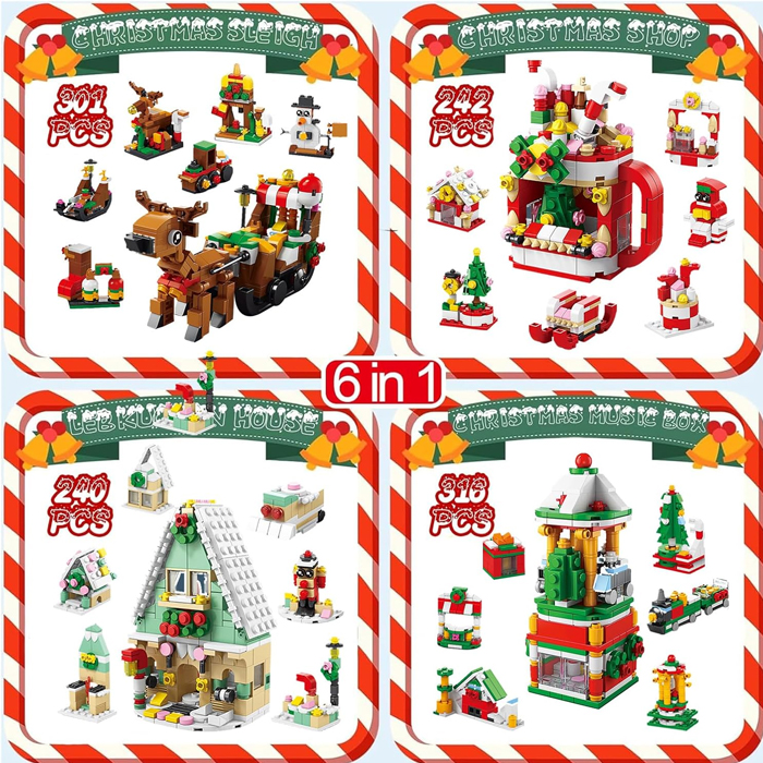 Brinquedos de montagem 24 em 4: Cada 6 modelos de Natal pequenos podem ser montados num modelo grande e terá 4 modelos de Natal grandes no final. Reúna a sua família à volta da árvore de Natal e construa uma cena mágica de Natal. Caixa de 24 surpresas: o brinquedo de construção tem 24 caixas de surpresas, que podem contar 24 dias para o Natal, todos os dias pode obter um conjunto de blocos aleatórios para construir e no último dia pode montar todos os conjuntos de blocos. Material de alta qualidade: este brinquedo de construção utiliza material ABS seguro e durável, macio e sem rebarbas, montado de forma compacta. Cada conjunto de blocos vem com uma folha colorida de instruções passo a passo para montar os blocos, para que as crianças possam montá-los facilmente! Presente perfeito: os kits de construção de modelos de Natal são a escolha perfeita para presentes e festas. É adequado para adultos, meninos, adolescentes, meninos e meninas, o que pode estimular a sua capacidade prática, criatividade e imaginação no processo de construção.