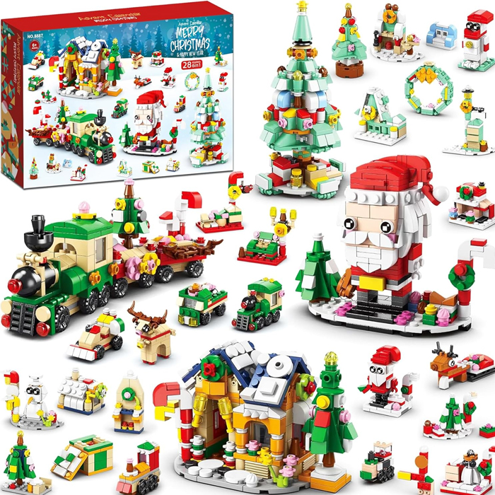 Brinquedos de montagem 24 em 4: os blocos empilháveis são compostos por blocos de construção de 1123 peças, que podem construir 24 modelos pequenos. E 24 minibrinquedos podem ser montados em 4 modelos de Natal: uma árvore de Natal, um Pai Natal, um comboio de árvore de Natal e uma casa de gengibre. Caixa de 24 surpresas: o brinquedo de construção tem 24 caixas de surpresas, que podem contar 24 dias para o Natal, todos os dias pode obter um conjunto de blocos aleatórios para construir e no último dia pode montar todos os conjuntos de blocos. Material de alta qualidade: este brinquedo de construção utiliza material ABS seguro e durável, macio e sem rebarbas, montado de forma compacta. Cada conjunto de blocos vem com uma folha colorida de instruções passo a passo para montar os blocos, para que as crianças possam montá-los facilmente! Presente perfeito: os kits de construção de modelos de Natal são a escolha perfeita para presentes e festas. É adequado para adultos, meninos, adolescentes, meninos e meninas, o que pode estimular a sua capacidade prática, criatividade e imaginação no processo de construção.