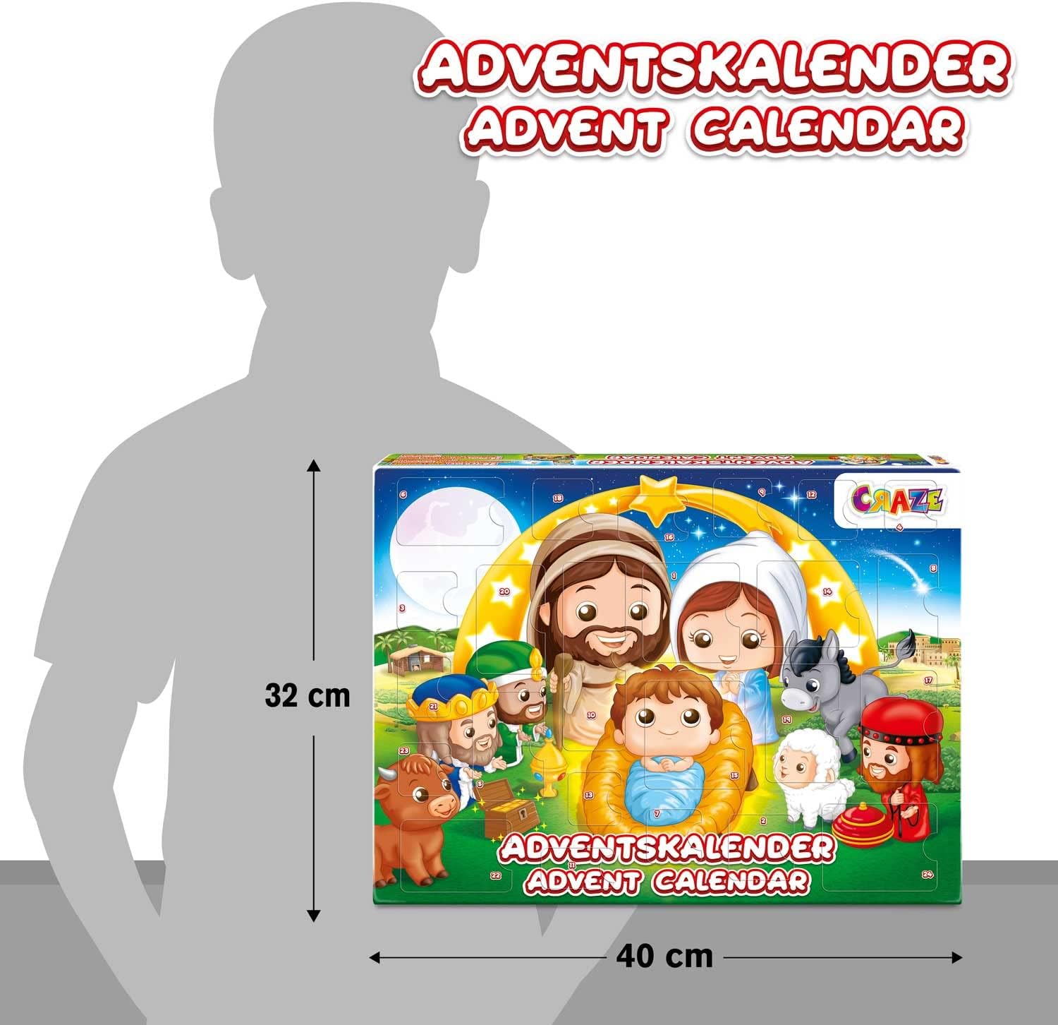Conteúdo: Este calendário do advento para crianças inclui 24 figuras 3D de alta qualidade no design moderno figuras de presépio. O calendário é apresentado numa caixa surpresa com decoração para o Natal.
