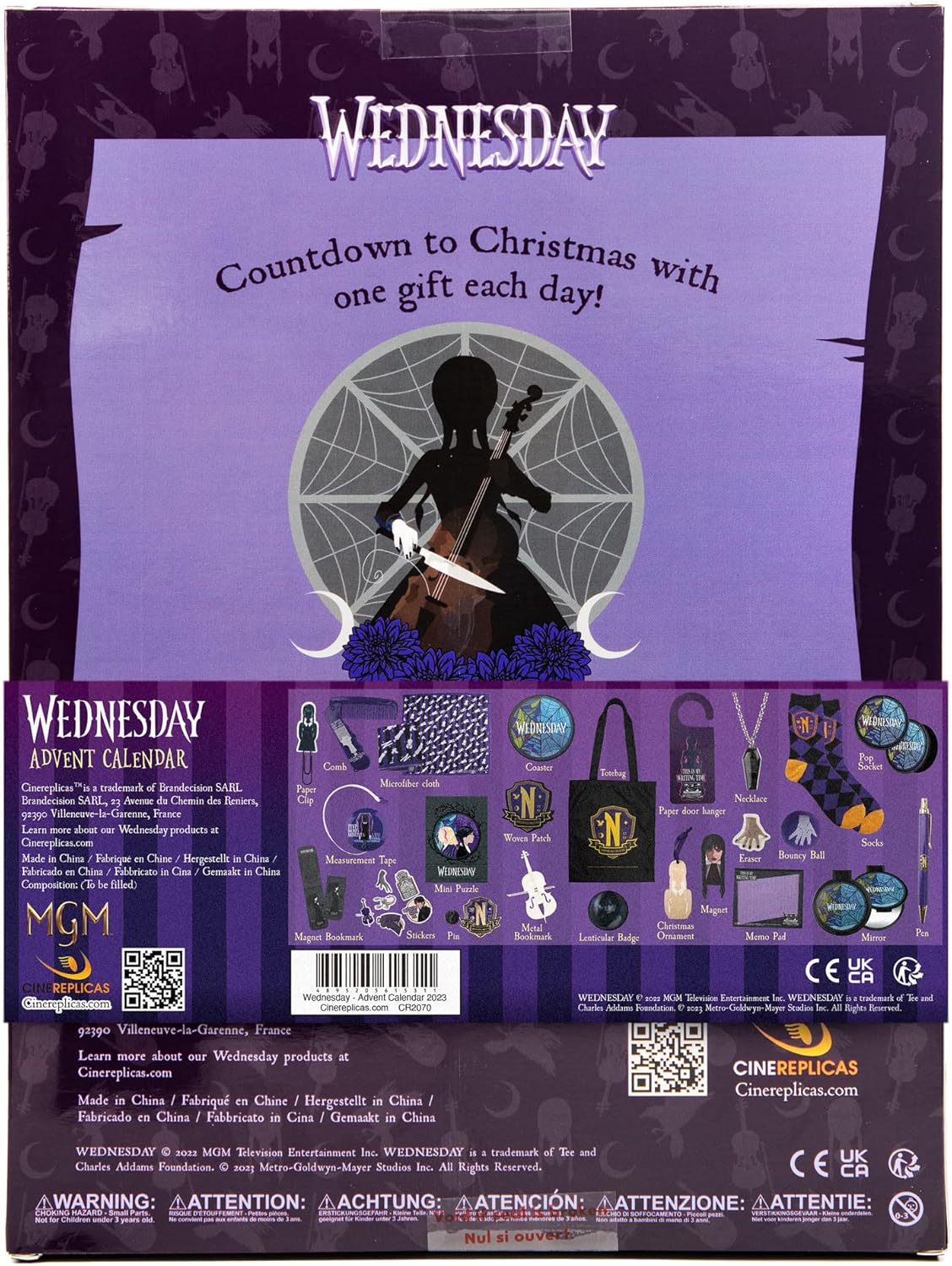 Entre na Academia Nevermore e no mundo de WEDNESDAY ADDAMS: Passe o seu Dezembro na Academia de Nevermore com o calendário de advento de Merlina em cinereplicas! Inclui 24 janelas que cada uma revelam um presente inspirado no mundo da série de sucesso da Netflix Wednesday. Prepare-se para descobrir artigos de papelaria maravilhosos, jóias e vários acessórios! Produto de baixa licença oficial: Este calendário do advento foi desenvolvido sob estrita conformidade com a licença MGM. Design original: A caixa e os 24 presentes são caracterizados por Merlina Addams ou outros elementos da série de sucesso, como o emblema da Academia Nevermore ou o vitral do quarto de Merlina e Enid. Uma marca bem reconhecida: Cinereplicas tem a confiança da MGM para representá-los em termos de produção de merchandising e desenvolver linhas de produtos de quarta-feira de alta qualidade.
