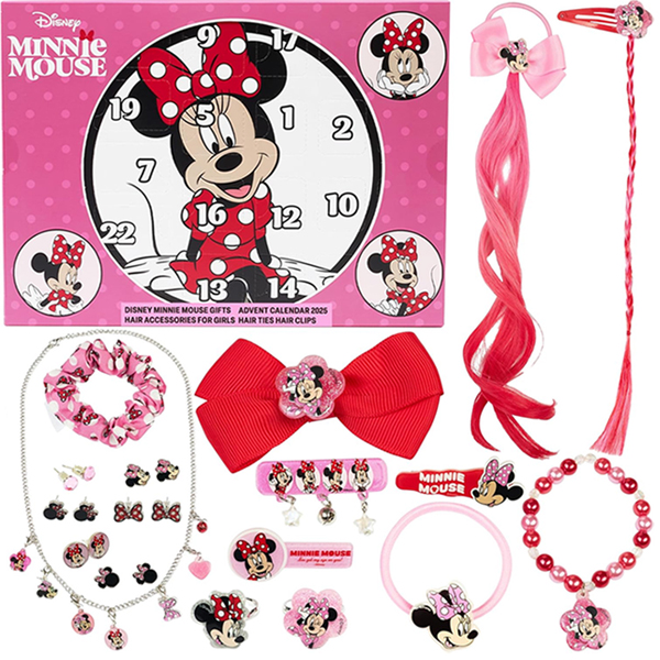 Produtos oficiais - Descubra uma variedade de produtos oficiais com marcas e designs de personagens como Minnie Mouse! Consulte o menu suspenso para ver as opções. Calendário advento 2025 para meninas - surpreenda todos os dias com um novo acessório de cabelo ou joalharia infantil. Todos os dias são uma alegria diferente. A contagem regressiva para o Natal será mágica! 24 surpresas originais - o calendário do advento de Natal inclui 24 presentes: colar, pinças com laço, colares, ganchos com extensão, anéis, brincos e muito mais. Veja as imagens para obter o conteúdo completo e os detalhes. Joalharia infantil incluída: além de acessórios para o cabelo, o conjunto inclui peças de bijuteria como colar, anéis e brincos criados para complementar o visual diário. Presente perfeito para dezembro - ideal como presente de Natal, detalhe diário ou complemento para um calendário de advento surpresa cheio de cores e fantasia.