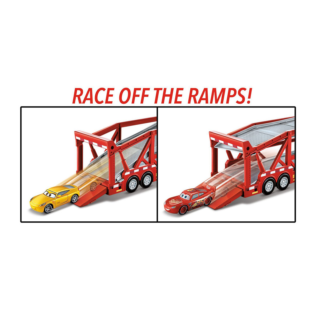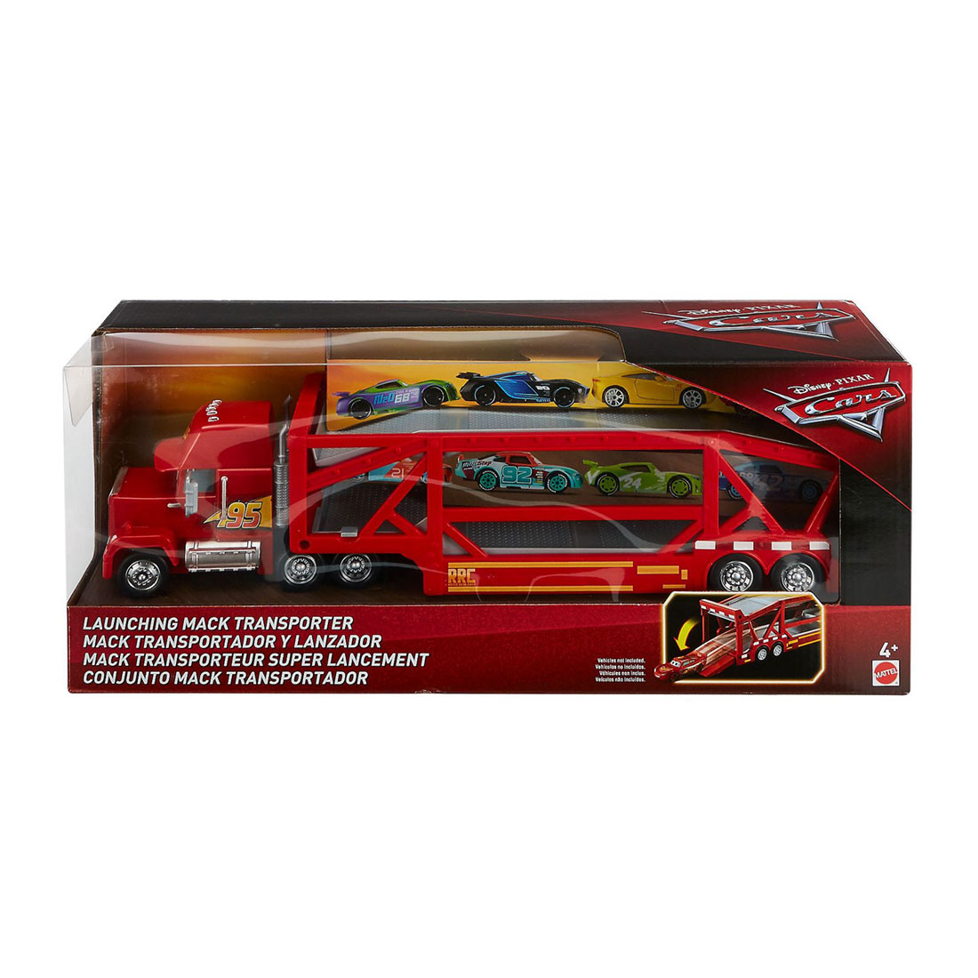 Leva os teus corredores de Carros da DisneyPixar contigo e diverte-te com este camião Mack Transporter fiel ao filme. Com uns impressionantes 43 cm de comprimento, o Mack tem uma cor vermelha icónica e logótipos dos patrocinadores e consegue transportar uma frota de até 15 veículos metalizados! Coloca-os no interior e faz-te à estrada para novas aventuras. Quando chegares à próxima corrida, basta inclinares o camião Mack para fazeres rolar os carros pela rampa abaixo e lançá-los no caminho para a vitória. Este camião de brincar emocionante dois em um permite que os fãs recriem as suas cenas preferidas, guardem os seus melhores carros de corrida e mantenham a diversão de Carros sempre em movimento! Veículos metalizados vendidos em separado e sujeitos à disponibilidade. Um Produto Mattel FPX96 Produto não funciona com pilhas ou baterias