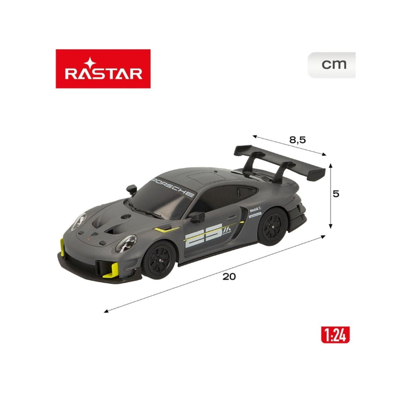 Prepare-se para dirigir o Porsche exclusivo RASTAR com controle remoto em escala 1:24! Este carro telecomandado, com Licença oficial da Porsche, é uma réplica fiel, em versão mini, do icónico modelo original Porsche 911 GT2 RS Clubsport 25. Com um detalhado design cinzento e um fabrico de elevada qualidade, este brinquedo à escala irá permitir-lhe você experimentar a emoção de um carro de última geração com um botão. Possui carroceria moldada por injeção, sistema de suspensão independente, ajuste de direção e spoiler traseiro. Seu controle remoto via rádio, que opera na frequência de 2,4 GH.z, oferece controle total com 6 funções diferentes, permitindo manobrar o carro com precisão e realismo. É um brinquedo ideal para desenvolver a imaginação, promover a orientação espacial e valorizar as habilidades manuais dos mais pequenos da casa. -Idade e valores: brinquedo recomendado para maiores de 6 anos que desenvolve a imaginação, promove a orientação espacial e melhora a destreza manual -Sinta a velocidade com o fantástico Porsche 911 GT2 RS Clubsport 25 telecomandado RASTAR na escala 1:24! -Design: Porsche 911 GT2 RS Clubsport 25 cinza com detalhes em amarelo esverdeado nas entradas de ar, carroceria moldada por injeção, sistema de suspensão independente, ajuste de direção e spoiler traseiro -Funções: o controle tem frequência de 2,4 GH.z, permite movimentar o carro para frente/trás e para frente/trás virando para esquerda ou direita -Pilhas: o carro funciona com 3 pilhas AA (não incluídas) e o controle remoto funciona com 2 pilhas AA (não incluídas).