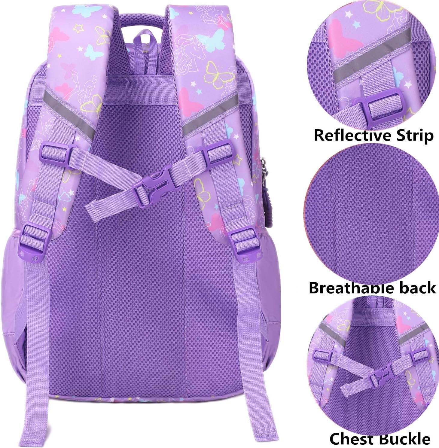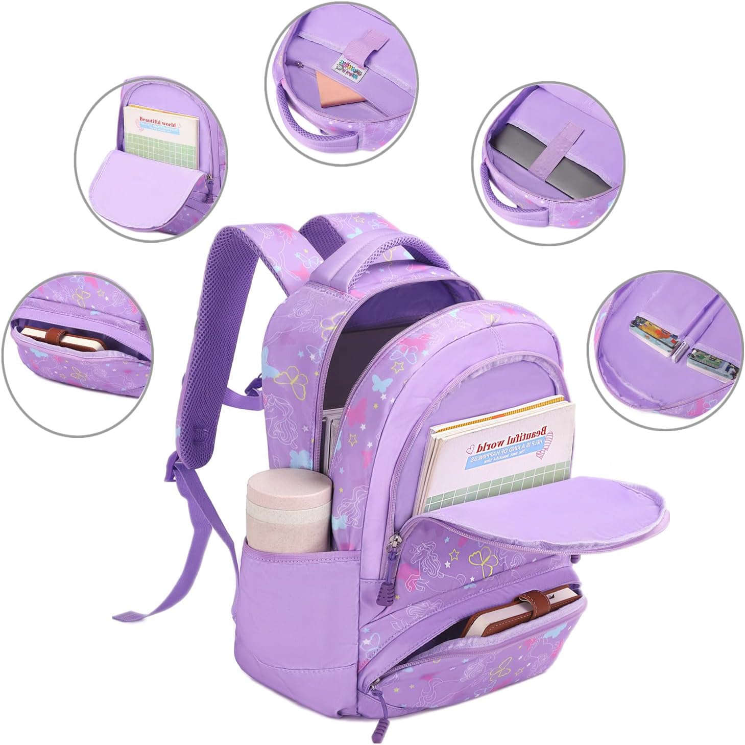 Conjunto Útil de mochilas escolares: o conjunto de mochilas de 3 em 1 com a mochila escolar lancheira estojo para lápis. Impressão com um lindo padrão de estrelas, cores vibrantes. Bonito e elegante. Dê à sua filha um feliz dia escolar! Um presente perfeito para as meninas.Mochila espaçosa: tamanho da bolsa escolar: 30 x 15,8 x 40 cm, peso: 1,1 LBs / 0,5 kg. Este conjunto de mochilas pode satisfazer a sua filha ou sobrinha para carregar os materiais escolares de que precisa todos os dias.Estrutura da mochila de estrelas para meninas: esta mochila escolar com 3 bolsos exteriores, o bolso maior com vários compartimentos é para papel de tamanho A4, livros, roupas, computador portátil/ipad/macbook de 14" e algumas pequenas coisas.Confortável e acolchoada: leve e confortável, a mochila estrela tem alças acolchoadas ajustáveis para os ombros e uma almofada. Reduzir o stress da carga pesada
