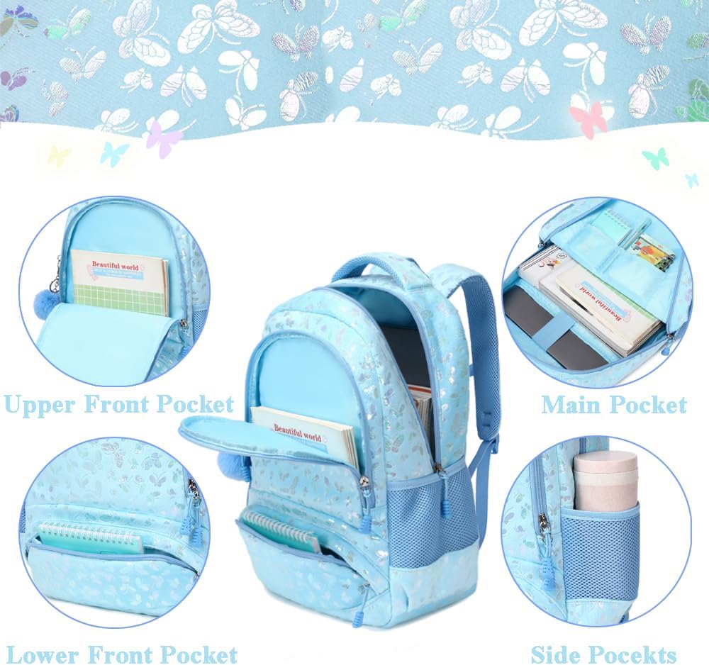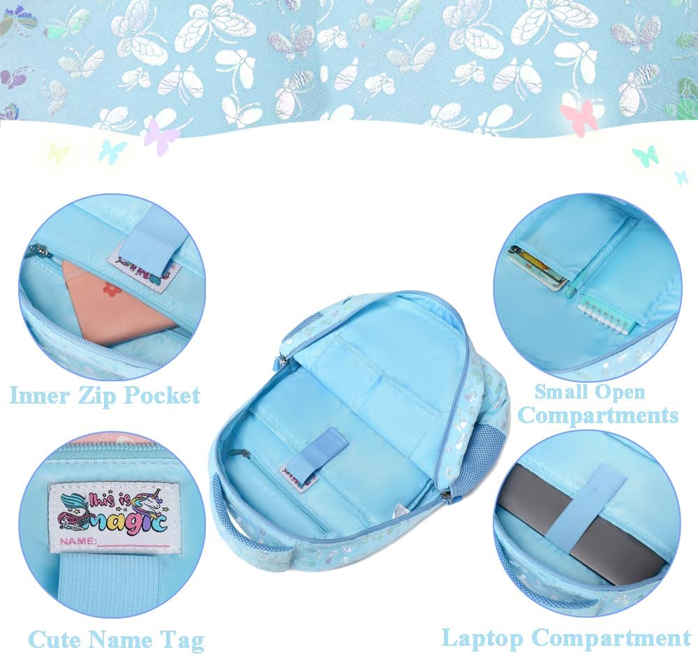 Conjunto Escolar Butterfly Blue - Mochila + lancheira + porta-lápis