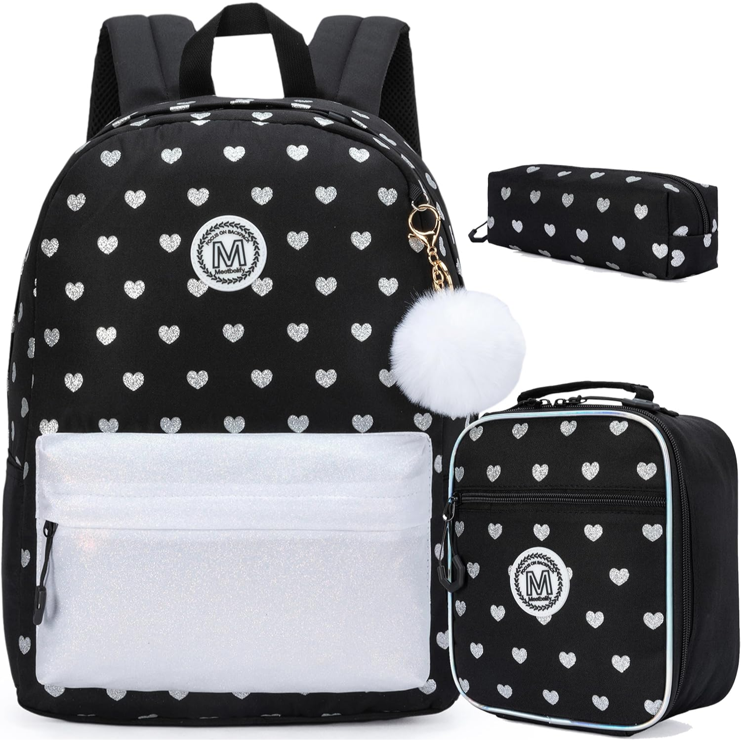Conjunto Escolar Corações Preto - Mochila Escolar + Lancheira + Porta-lápis