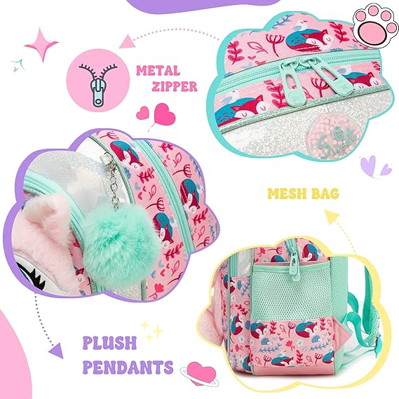 Conjunto Escolar Fluffy Raposa - Mochila Escolar + lancheira + estojo