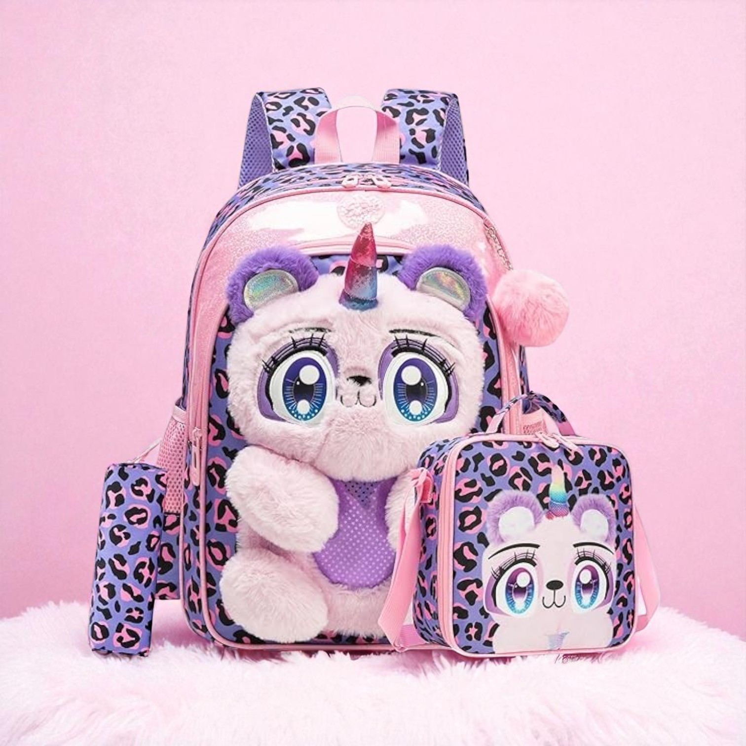 Conjunto Escolar Fluffy Unicorn - Mochila Escolar + lancheira + estojo
