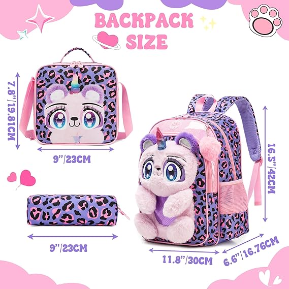 Dimensões: Mochila menina: 42 x 30 x 20 cm, lancheira: 23 x 20 cm, estojo: 23 cm. Esta mochila escolar para meninas atenderá às necessidades diárias das suas filhas.