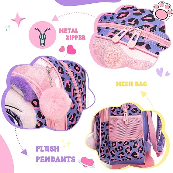 Dimensões: Mochila rodas menina: 42 x 30 x 20 cm, lancheira: 23 x 20 cm, estojo: 23 cm Conjunto de 3 peças: Além da mochila escolar com rodas principal, este conjunto também inclui uma prática bolsa para lanche e um estojo. O bolso principal pode acomodar cadernos A4 e os bolsos laterais para garrafas de água. Os sacos também podem ser usados para guardar o lanche das crianças. O seu adorável design de pelúcia em cores brilhantes torna-a um presente ideal para o regresso à escola e para qualquer ocasião. Design: Este carrinho mochila escolar reduz efetivamente a pressão nas costas, mantém a saúde da coluna vertebral e protege-o do peso. Esta mochila escolar resistente com rodas é ideal para viagens diárias de ida e volta para a escola e para viagens.