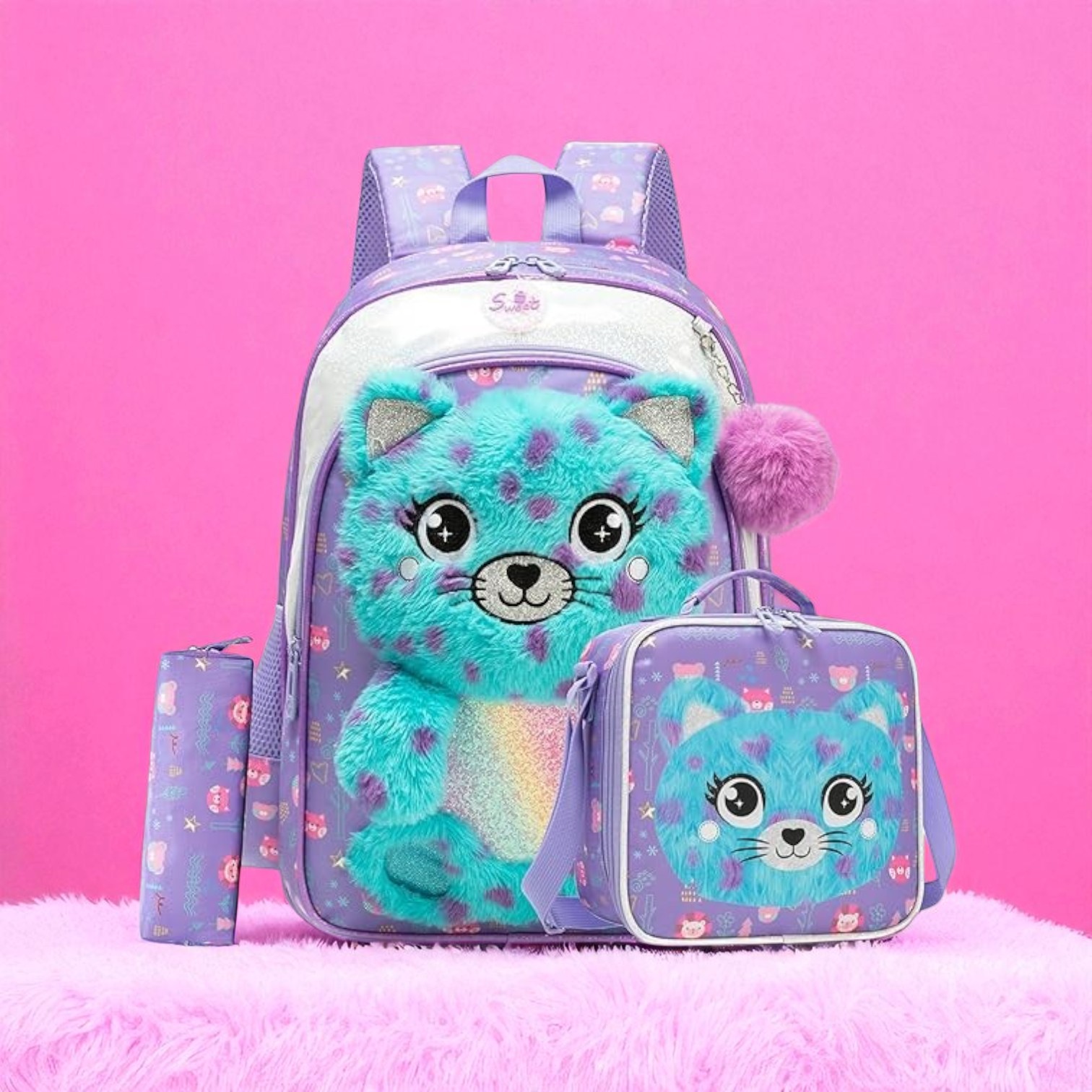 Conjunto Escolar Fluffy Urso - Mochila Escolar + lancheira + estojo