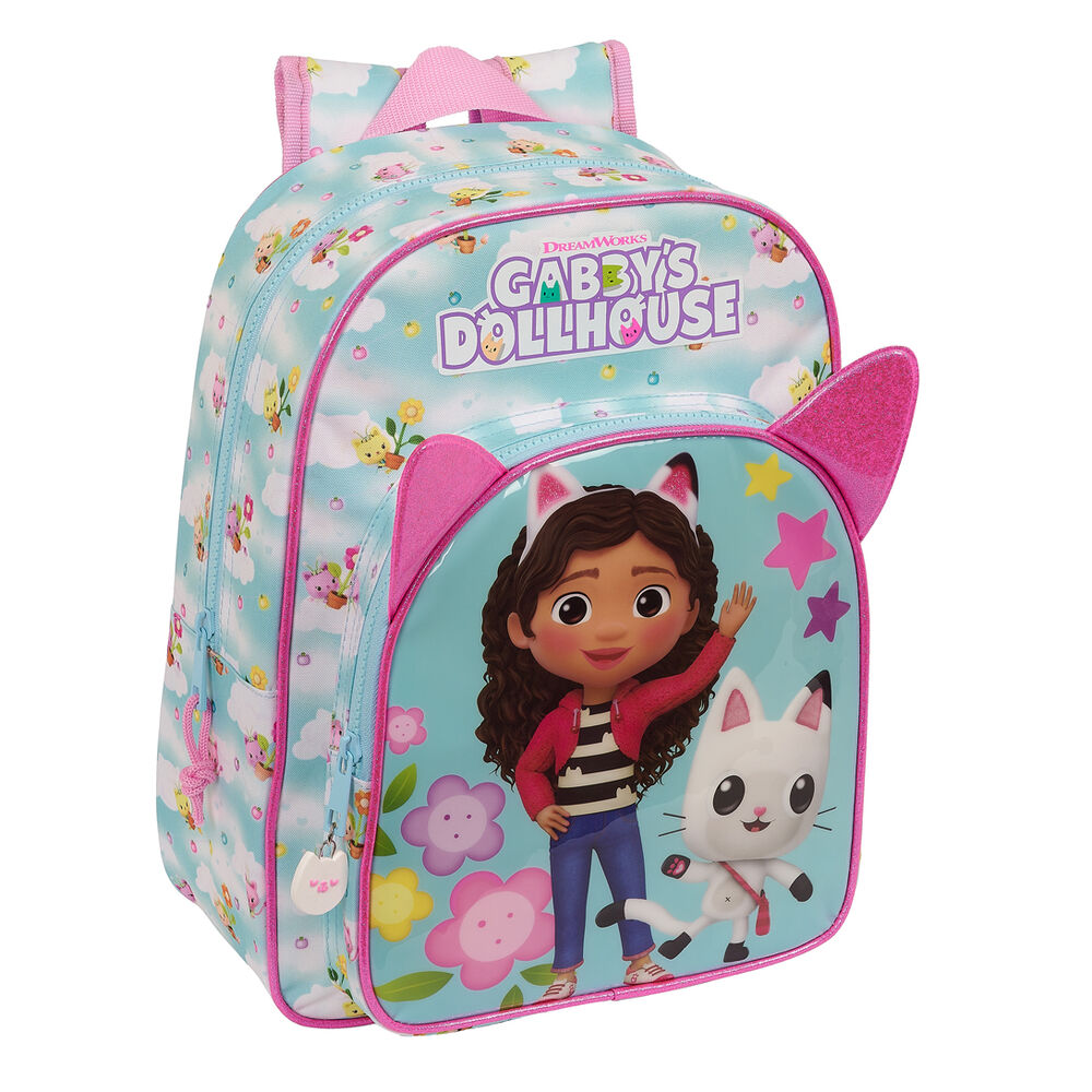 Mochila: Casa de Bonecas da Gabby. Tamanho: 32x12x38cm. Adaptável ao carrinho mochila. Bolsos laterais porta-garrafas. Extrator de zíper principal duplo para facilitar a abertura. Alças e costas ergonômicas e acolchoadas. Bolso frontal de grande formato. Alça na parte superior.