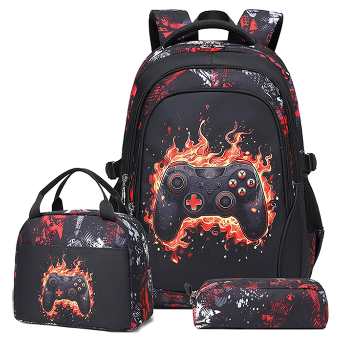 Conjunto Escolar Gamer Red - Mochila + lancheira + porta-lápis