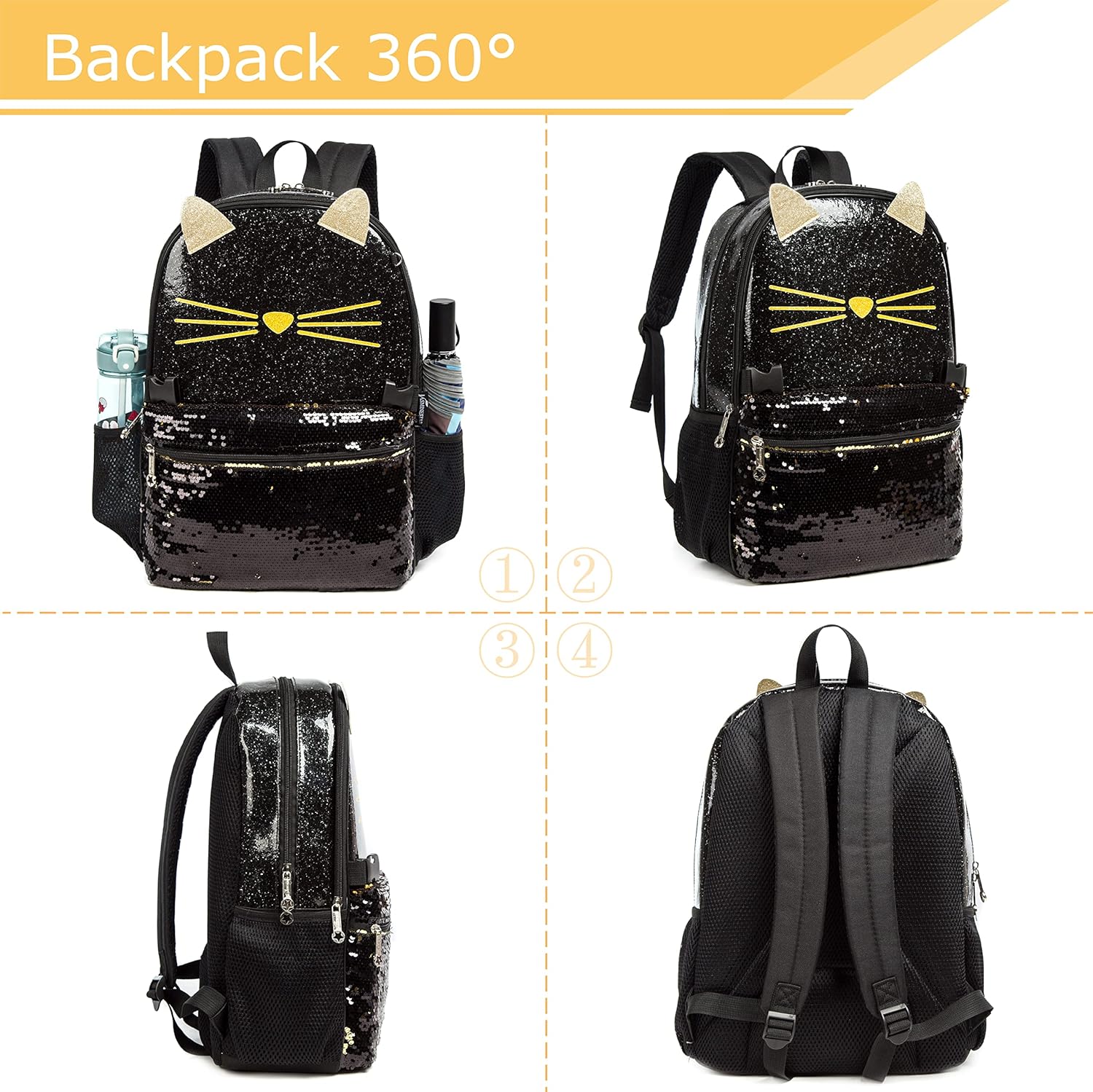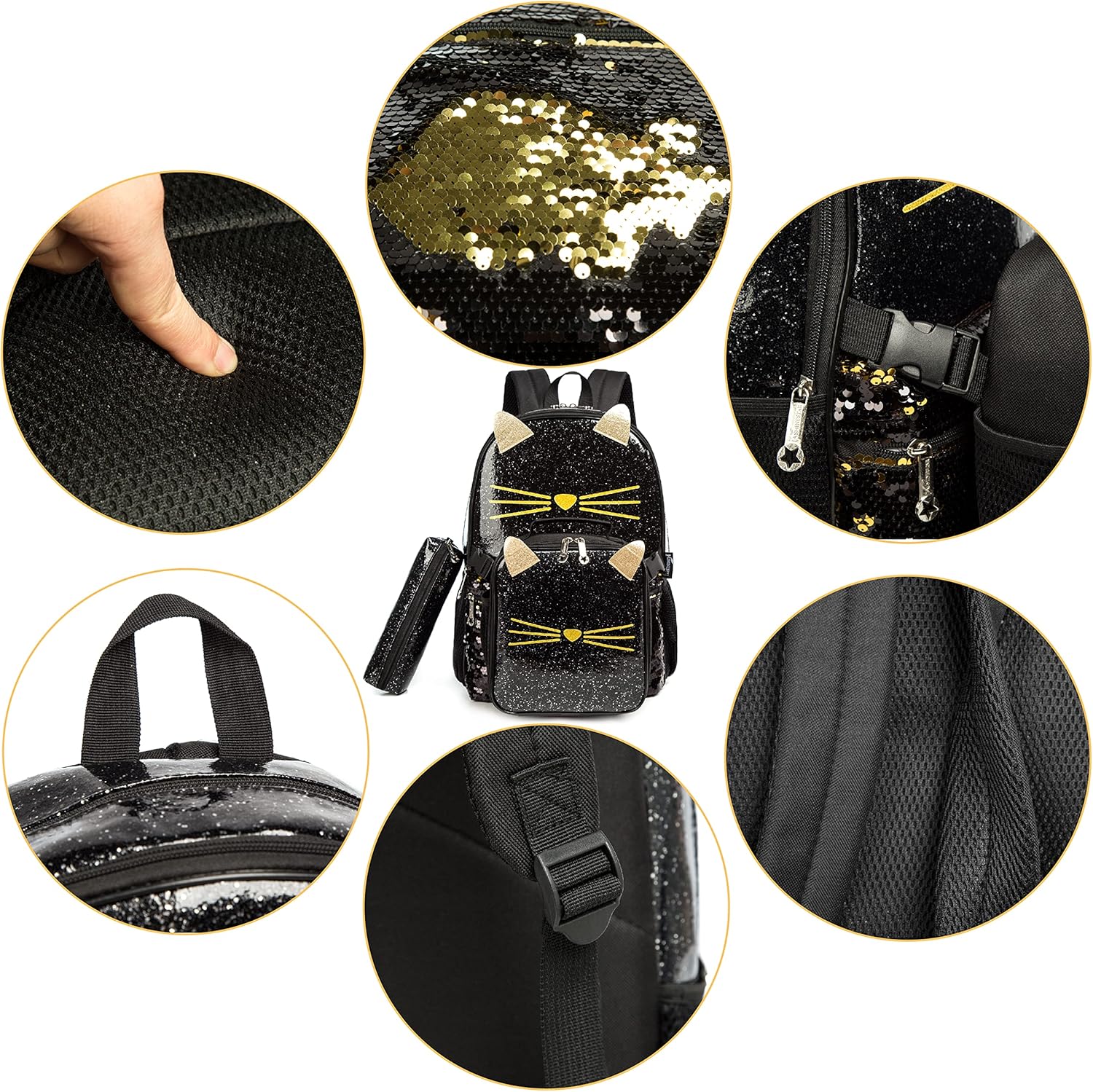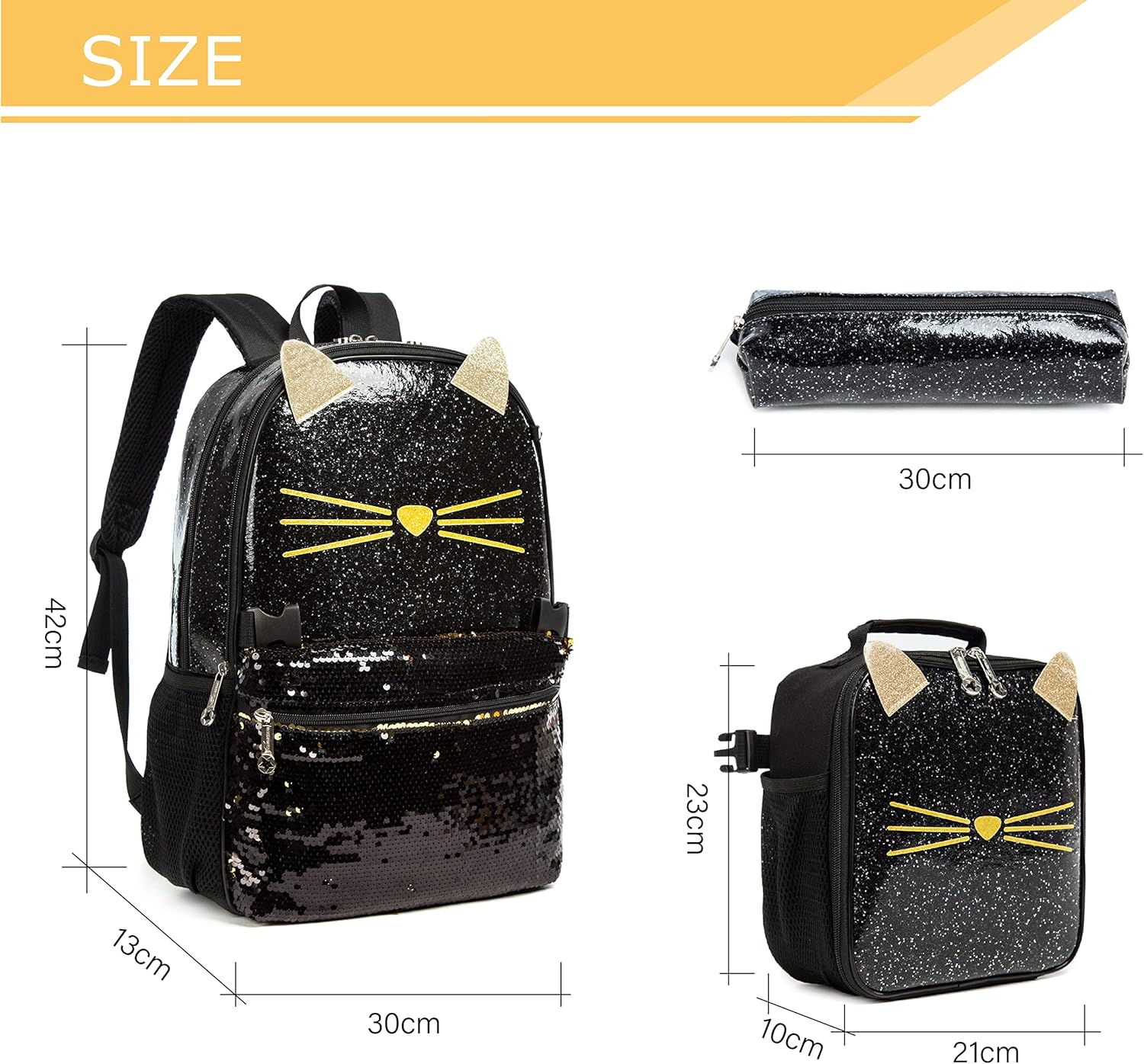 Conjunto Escolar Gatinha - Mochila + lancheira + porta-lápis