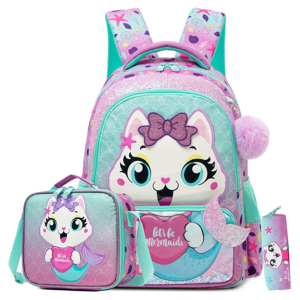 Design: Seja um gato adorável, um dinossauro corajoso, um estampado moderno de tubarão, uma sereia brilhante, borboletas delicadas, um unicórnio ou uma bola de futebol, cada menina encontrará o seu estilo favorito aqui! Ergonómica: Esta mochila para menina com alças acolchoadas para os ombros e um painel traseiro respirável para um transporte confortável, mesmo em longos dias escolares. Amplo espaço de armazenamento: Estas mochilas escolares permitem um fácil armazenamento: livros, estoques, garrafas de água e lancheiras cabem perfeitamente nos seus compartimentos práticos. Dimensões: mochila infantil: 42 x 30 x 20 cm, lancheira de almoço: 23 x 20 cm, estojo: 23 cm. Esta mochila infantil da escola primária vai adorar as suas filhas, proporcionando o espaço ideal para transportar o seu material escolar diário.