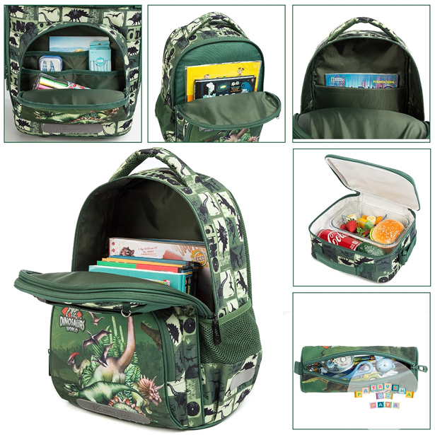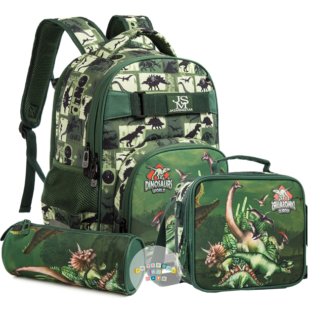 Conjunto Escolar Jurassic Dinosaur - Mochila + lancheira + porta-lápis