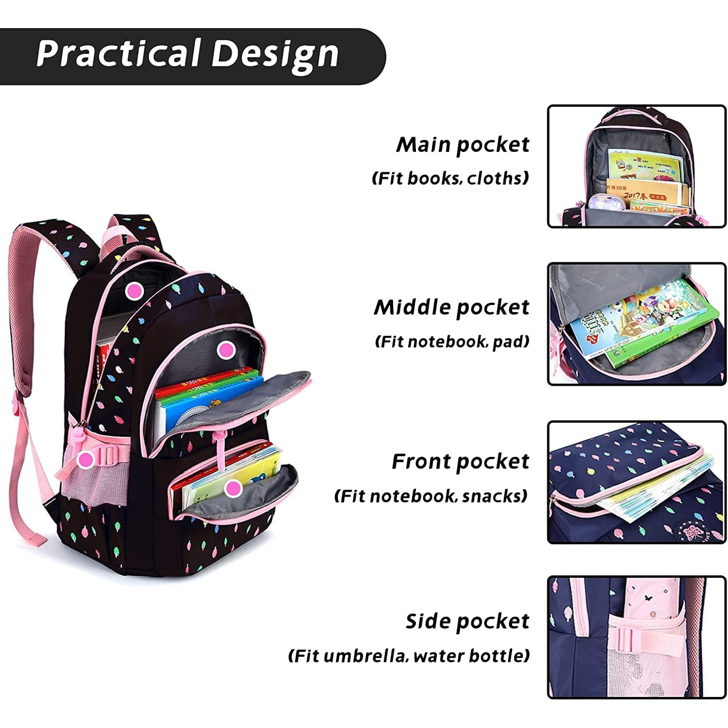 Tamanho da mochila escolar: 30 x 18 x 44 cm. Com vários compartimentos, pode proporcionar espaço suficiente para colocar livros em tamanho A4 para crianças, laptop, iPad, garrafas de água, livros e artigos de papelaria.