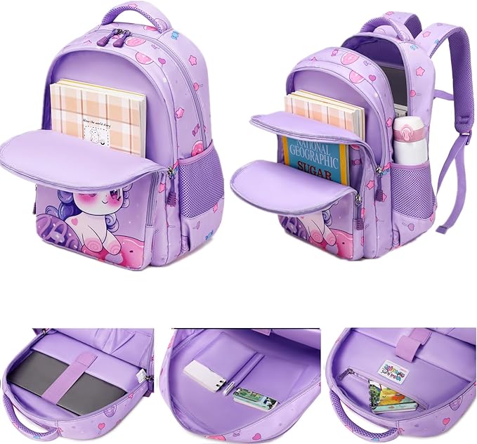 Grande capacidade: a mochila possui 1 compartimento principal espaçoso com uma camada intermédia acolchoada para portátil, 1 compartimento intermediário e 2 bolsos frontais com fecho de correr para que as crianças possam organizar ordenadamente o seu material escolar e de uso diário. Esta mochila escolar tem 2 bolsos laterais de malha para uma garrafa de água e um guarda-chuva.