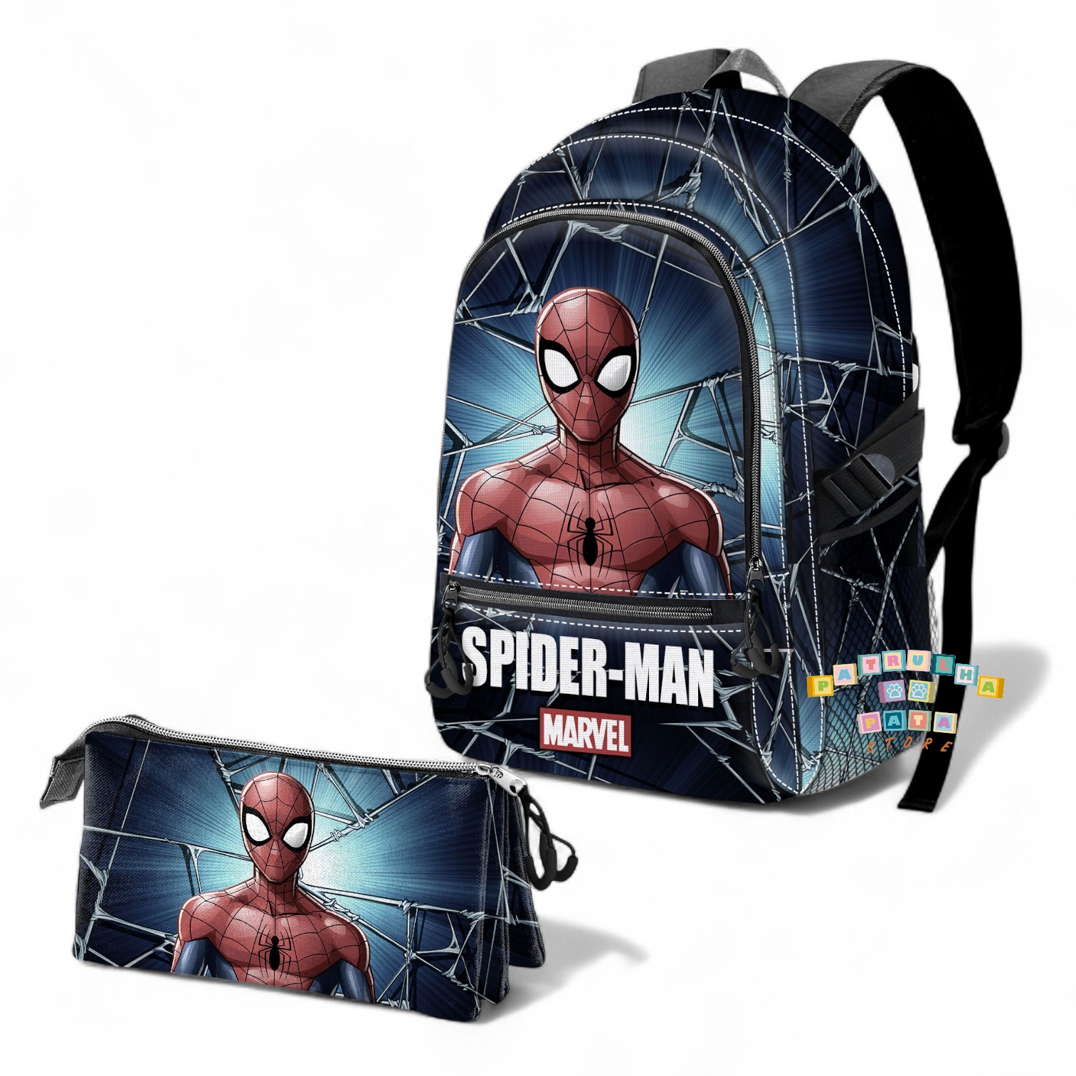 Conjunto Escolar Maximum Spiderman Marvel - Mochila Escolar 44cm adaptável + porta-lápis triplo