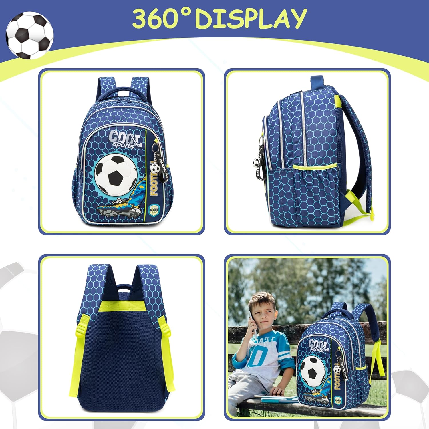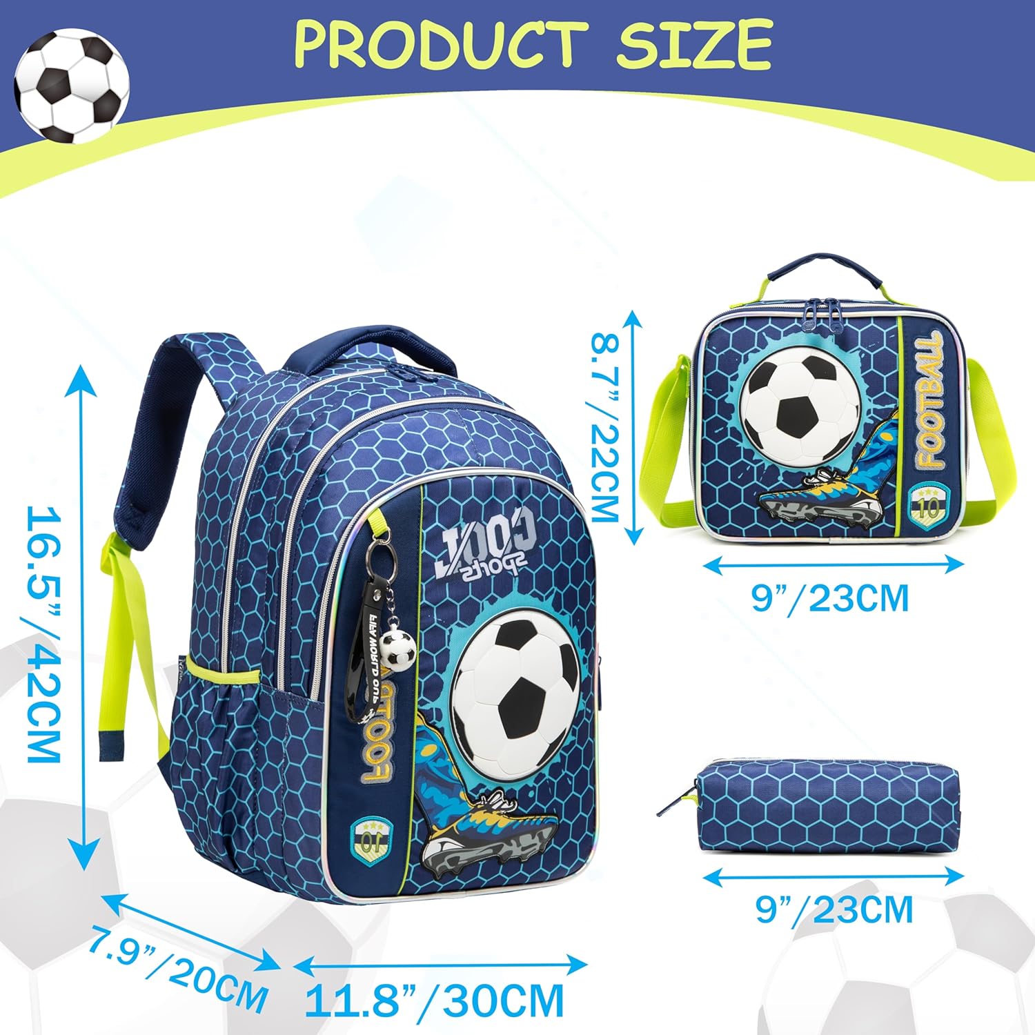 Conjunto Escolar Mochila Futebol - Mochila + lancheira + porta-lápis