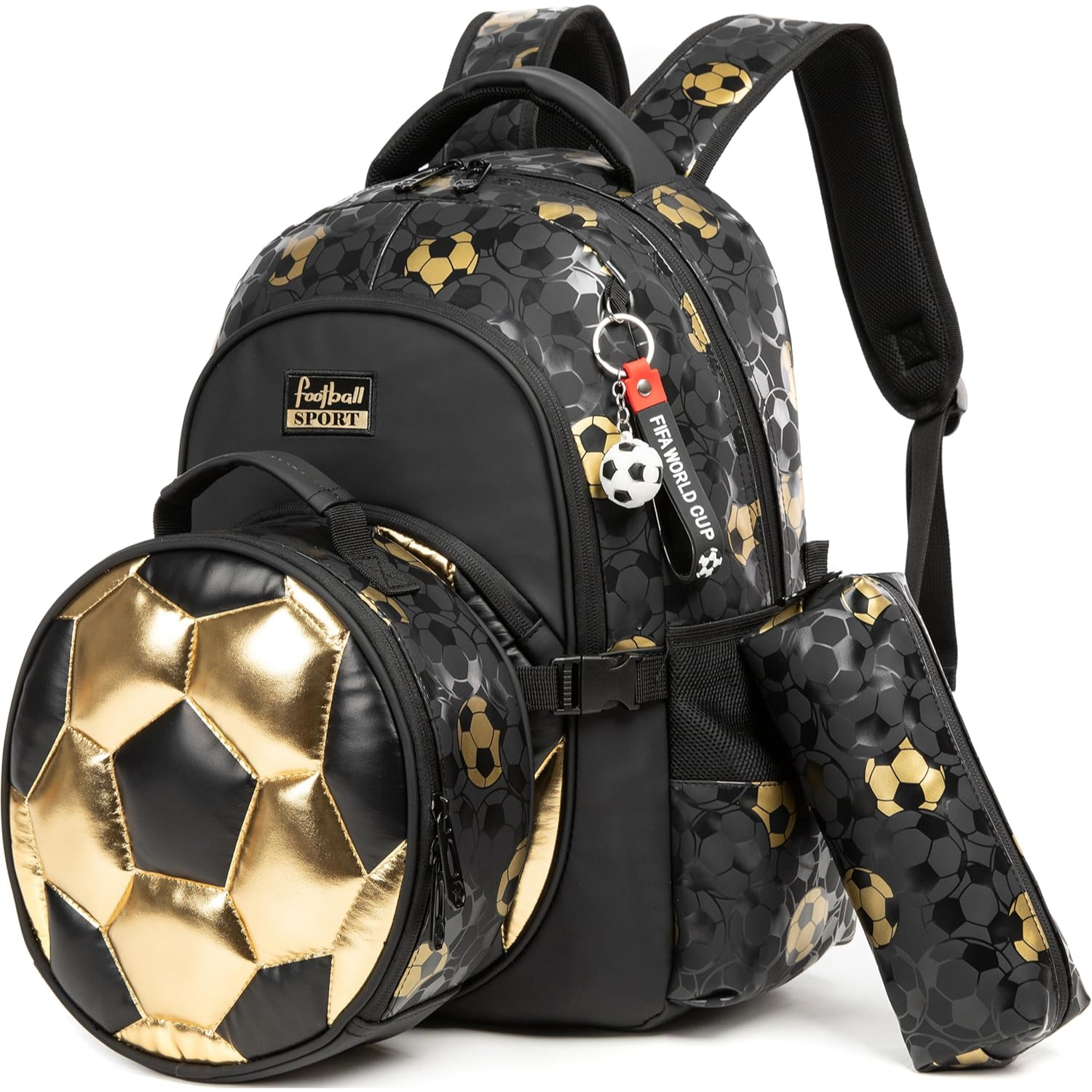 Conjunto Escolar Mochila Futebol - Mochila + lancheira + porta-lápis