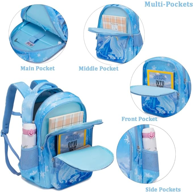 Estruturas de mochila para meninas: esta mochila escolar para meninas é composta por 3 bolsos principais, 2 bolsos laterais e suficiente para crianças do ensino fundamental.