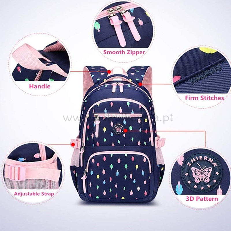 Tamanho da mochila escolar: 30 x 18 x 44 cm. Com vários compartimentos, pode proporcionar espaço suficiente para colocar livros em tamanho A4 para crianças, laptop, iPad, garrafas de água, livros e artigos de papelaria.