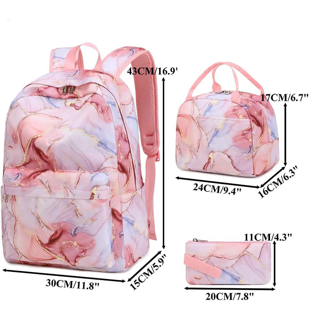 Conjunto Escolar Pink Marble - Mochila + lancheira + porta-lápis
