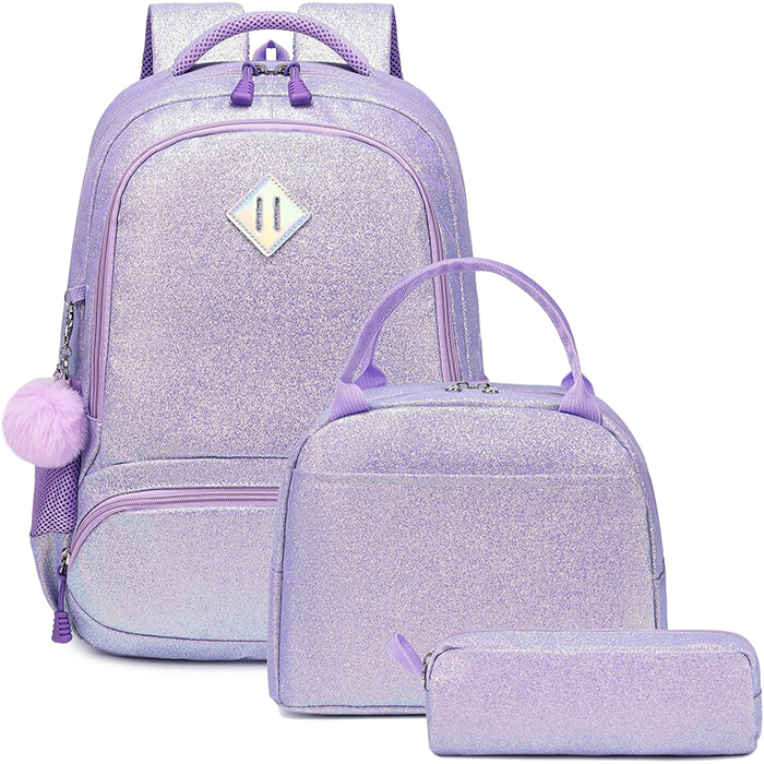 Conjunto Escolar Purple Glitter - Mochila + lancheira + porta-lápis