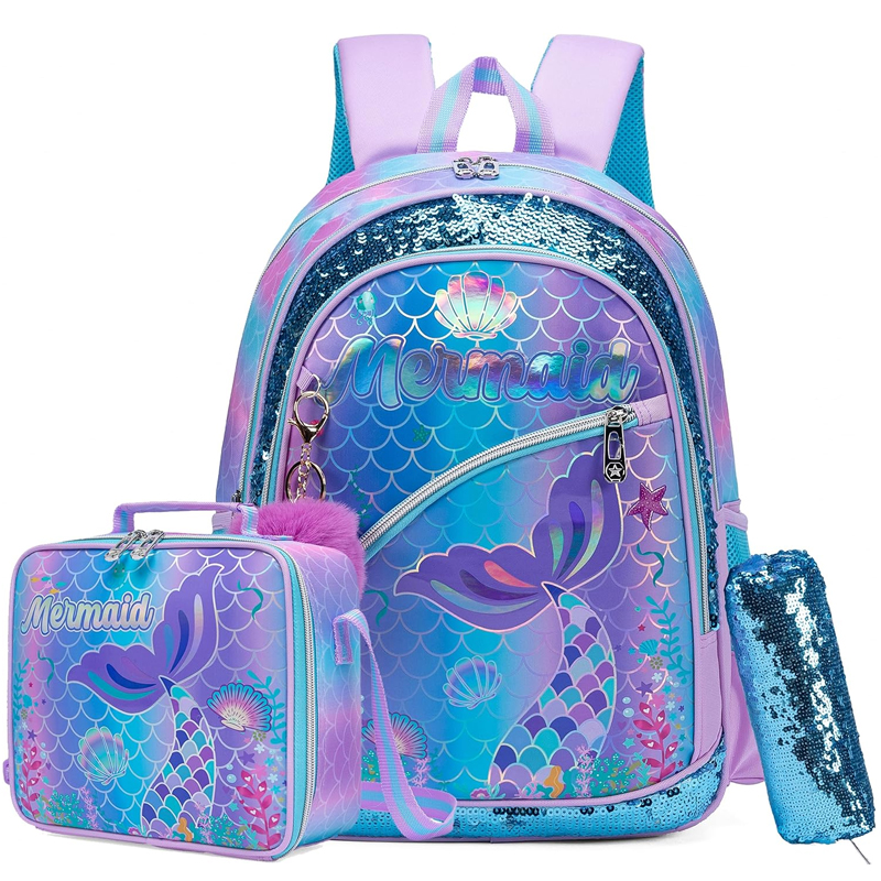 Conjunto Escolar Sereia - Mochila Escolar + Lancheira + Porta-lápis