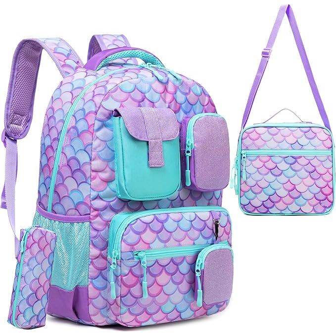 Conjunto Escolar Sereia Skin - Mochila + lancheira + porta-lápis