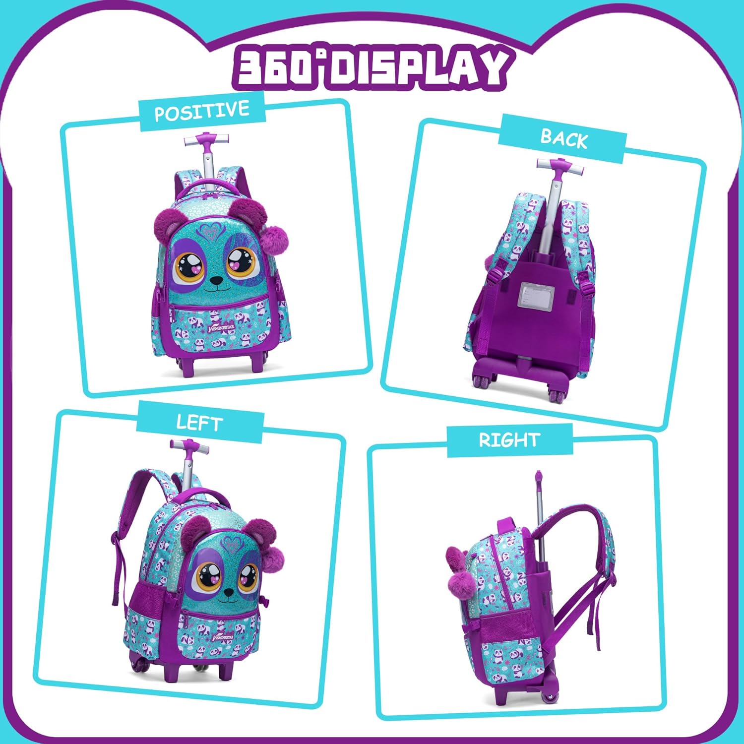 Tamanho: mochila rodas menina: 42cm x 30 cm x 20 cm, lancheira de almoço: 23 cm x 20 cm, estojo para lápis: 23 cm. Design: Desenhamos uma variedade de gatos e gatinhos, unicórnios, raposas e pandas em cores brilhantes para que as crianças esperem com ilusão o novo curso escolar (tenha em conta que o trolley e a bolsa para livros não são removíveis). Trolley escolar de grande capacidade: as mochilas escolares com rodas têm um grande compartimento principal com um compartimento para computador, brinquedos, material escolar ou artigos de viagem, bem como bolsos frontais para ter à mão os objetos mais pequenos. Guarda-chuvas e garrafas de água podem ser guardadas nos bolsos de malha de ambos os lados. Confortável e prático. Material: O design de 2 rodas de baixo ruído com haste de liga de alumínio de alta resistência não só garante que pode ser girado sem problemas e resistente ao desgaste, mas também facilita e natural. A barra de alu de carrinho tem 2 configurações de comprimento, durável e forte.