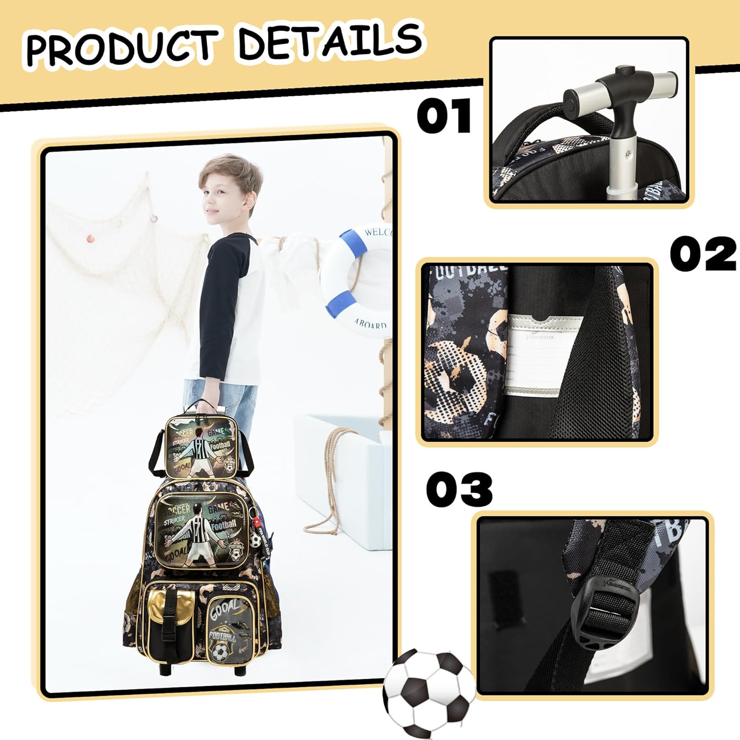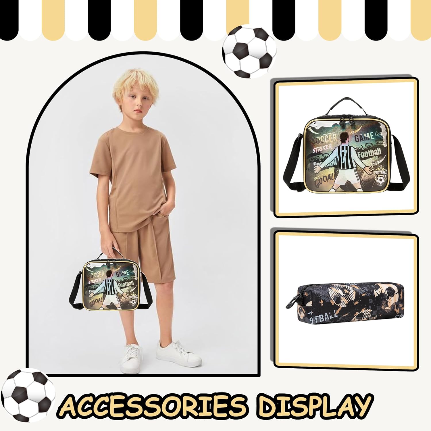 Conjunto Escolar Trolley Futebol - Trolley + lancheira + porta-lápis