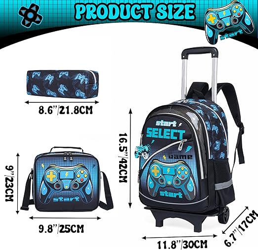 Conjunto Escolar Trolley Gamer - Trolley + lancheira + porta-lápis