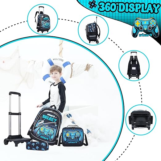 Dimensões do saco: sac à dos à roulettes: 42 * 30 * 20 cm. 2 modos de uso: a mochila Trolley pode ser usada separadamente do trolley. Quando não quiser usar o trolley, pode removê-lo e simplesmente levar a mochila. O carro também pode ser usado de várias maneiras. Grande capacidade: 1 bolsa principal, pode colocar livros, roupas, brinquedos, lanches. 1 compartimento com bolso para portátil, pode colocar iPad ou livros. 1 bolsa secundária existe uma bolsa de papelaria combinada que pode conter cadernos, canetas e artigos pessoais. 2 bolsos frontais, pode colocar chaves, cartões, canetas. 2 x rede lateral para garrafas de água dobráveis ou guarda-chuvas.
