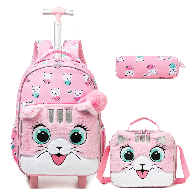 Dimensões da bagagem: 42 x 30 x 20 cm, tamanho do almoço embalado: 22 x 24 cm, dimensões do suporte para peças: 23 cm. Grande capacidade: o compartimento principal com bolsos multiusos, suficiente para colocar guarda-chuvas dobráveis, garrafa de água, livros e artigos de papelaria, etc., também os mantém em ordem sem problemas. Material de lantejoulas com purpurina feito: divirta-se mais para os seus filhos, de acordo com o seu humor para mudar o estilo da mochila. Fecho de correr colorido com uma cabeça de fecho especial e bonita. Material: design silencioso de 2 rodas com haste de liga de alumínio de alta resistência, não apenas garante que possa girá-lo suavemente e resistente ao desgaste, mas torna-o fácil e natural. Feito de material de nylon de alta qualidade, resistente à água e durável. As costas com design respirável e as alças acolchoadas para os ombros reduziram bastante a pressão nas costas e nos ombros. (Esta haste e o saco não podem ser removidos, tenha em conta).