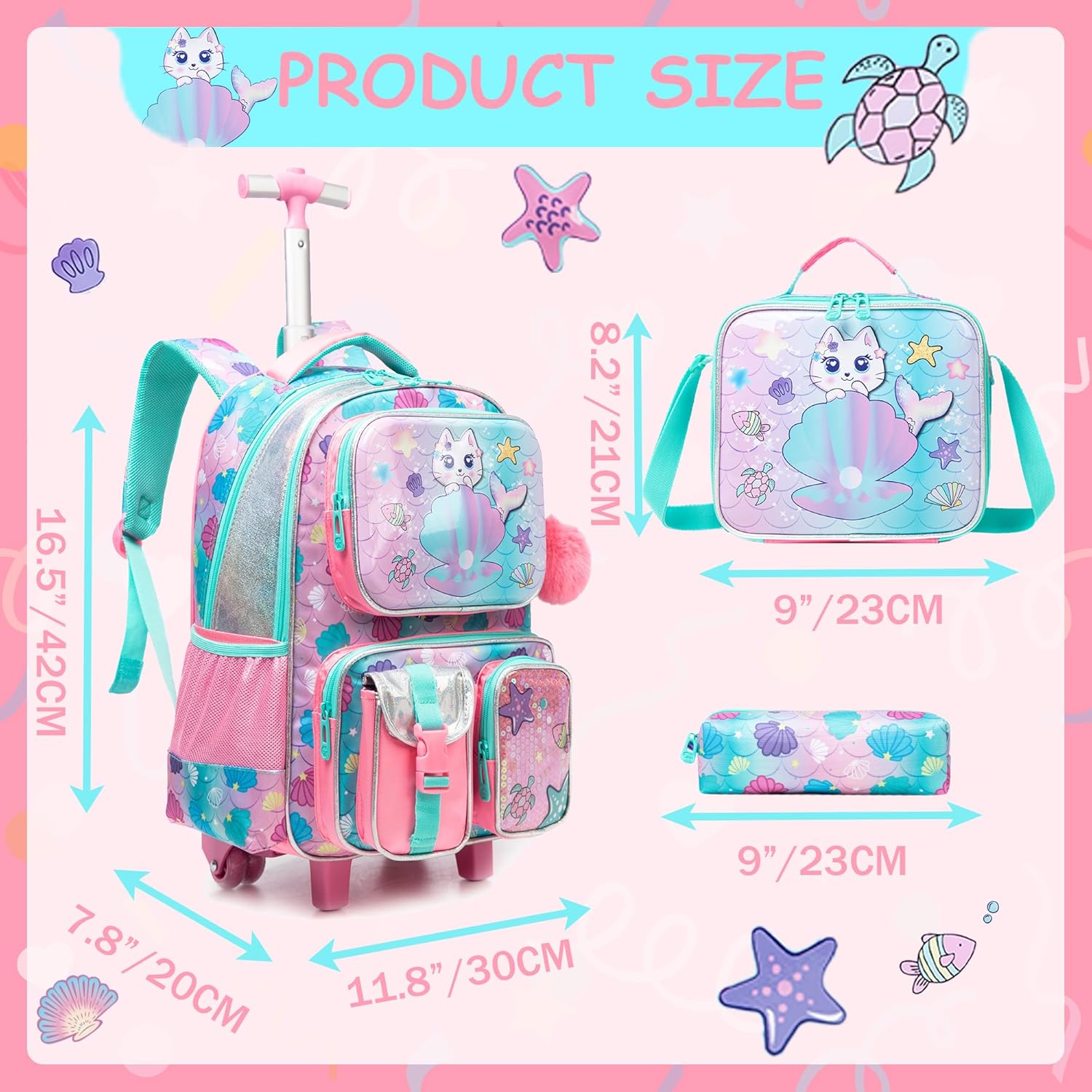 Conjunto Escolar Trolley Gatinha Sereia - Trolley + lancheira + porta-lápis