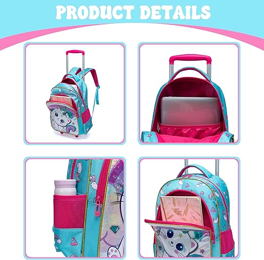 Dimensões: mochila rodas (vareta de carro não removível): 42 x 30 x 20 cm, lancheira: 23 x 20 cm, estojo: 23 cm. Conjunto: Esta mochila com rodas menina inclui uma mochila com rodas, um estojo para lápis e uma bolsa para lanche, ideal para almoço ou lanches entre as refeições. A mochila com rodas para meninas com uma relação preço-desempenho muito alta é o melhor presente para as crianças. Padrões: A mala com rodas para menina é decorada com padrões encantadores que encantarão todas as crianças. Os designs variam de gatos bonitos a emocionantes padrões de futebol e sirenes mágicas. Estes modelos são especialmente desenhados para crianças pequenas em idade escolar primária e fazem deste conjunto um autêntico ponto de atração.
